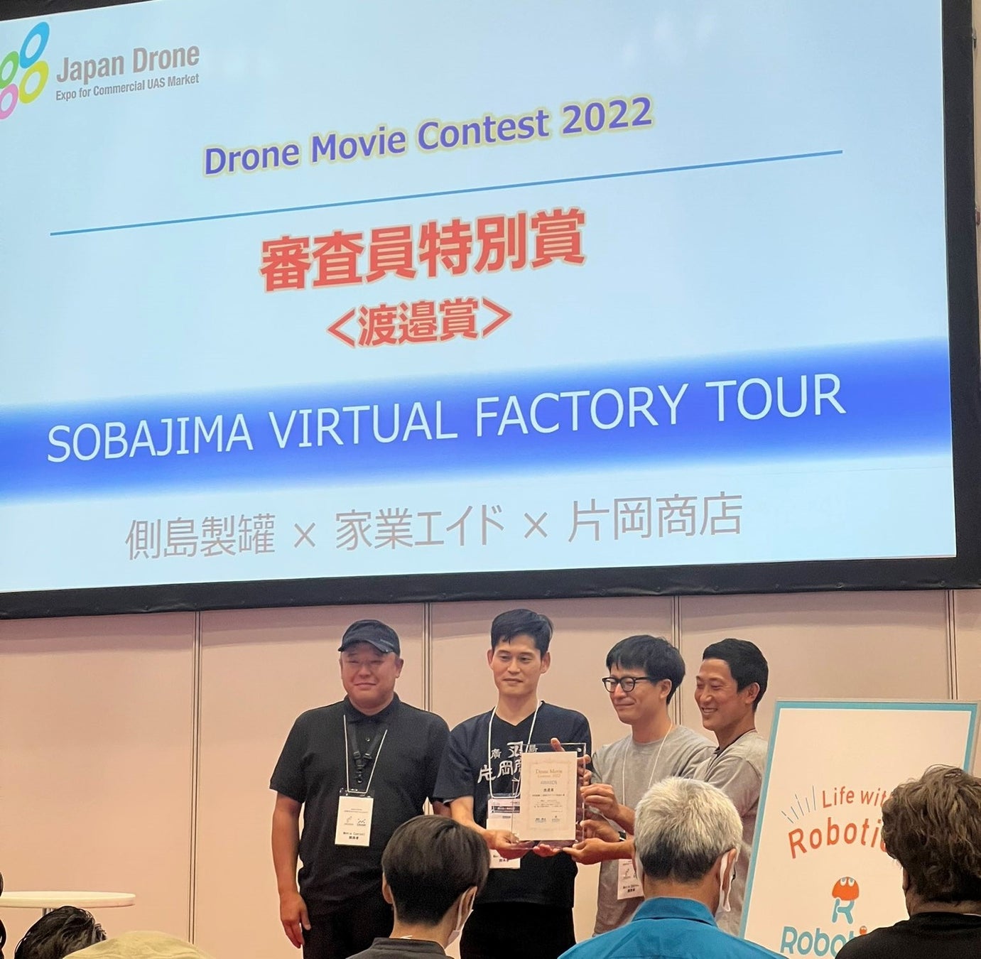 そして缶1つ1つに想いを込めて製造する社員さんと様々なプレス機が稼働する工場をワンカットで撮影した作品を、全国的なドローン動画コンテスト「Drone Movie Content 2022」に応募した結果、6/21 幕張メッセで開催された表彰式にて審査員特別賞を受賞しました。