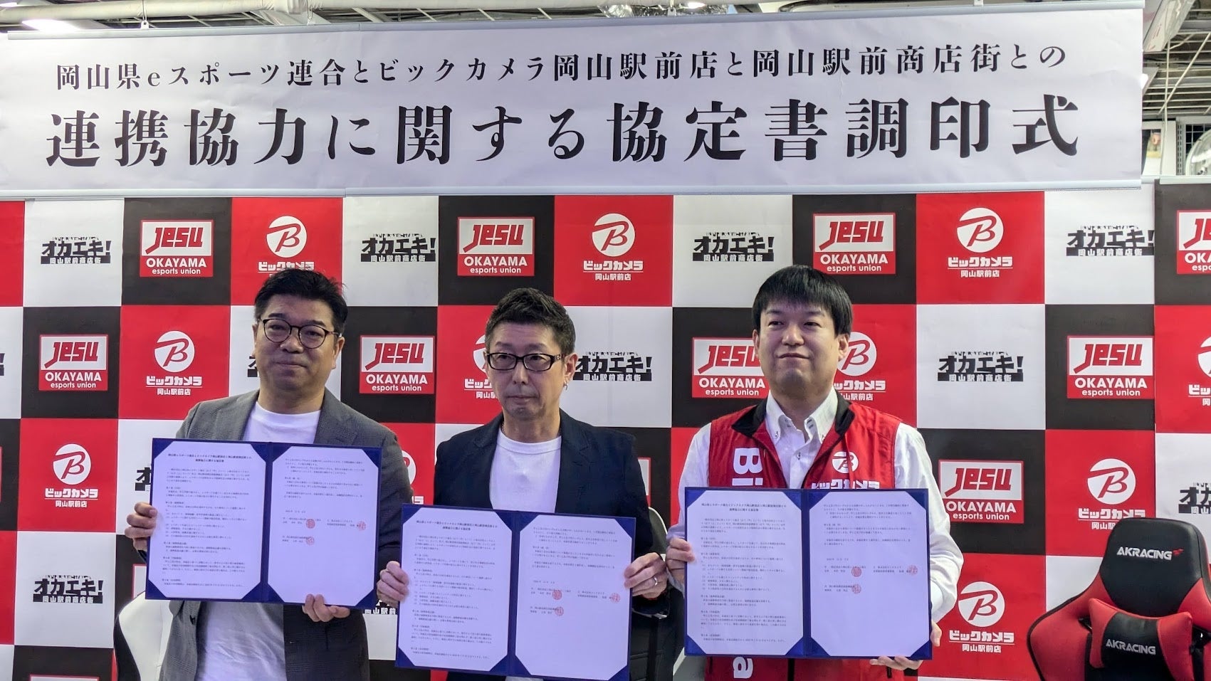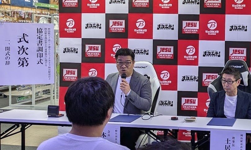 日本初、(社)岡山県eスポーツ連合、岡山駅前商店街、ビックカメラ岡山駅前店との地域活性を目的とした連携協定調印式を実施