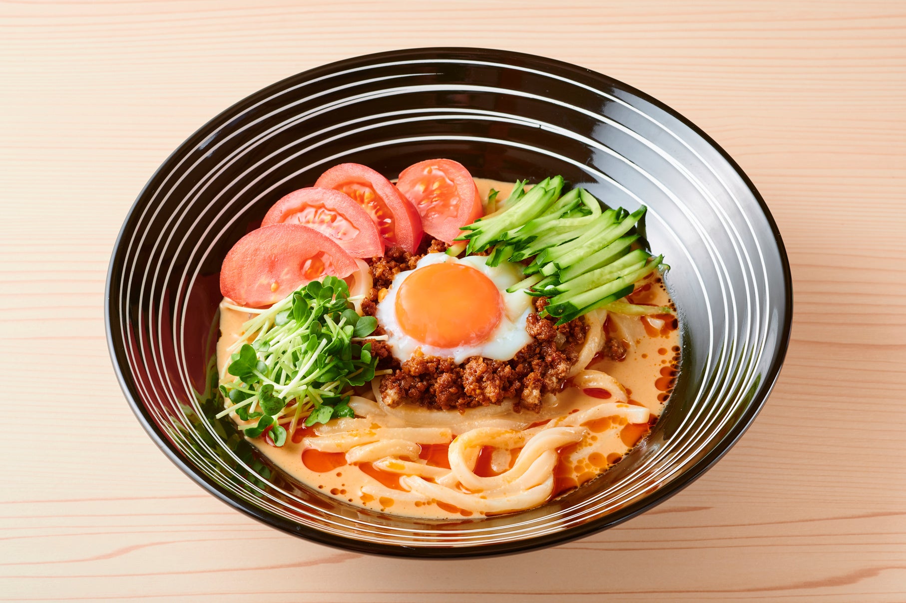 無添加・非加熱の生の胡麻だれと自家製ラー油の味わいをシンプルに楽しめる一杯です。