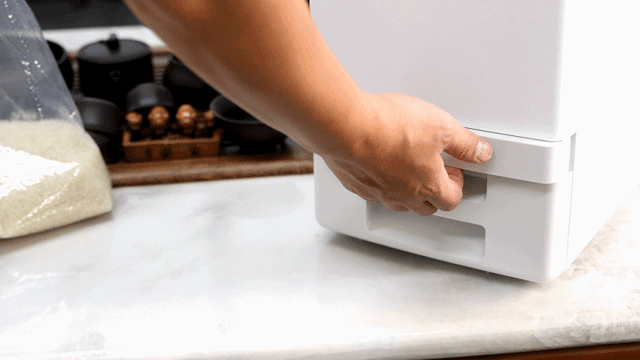 引き出しを引くだけで、1回あたり1合(約150g)が自動で計量されて出てきます。
