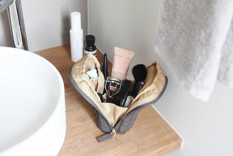 ポーチそのものが自立するという設計はそのままに、毎日持ち歩きできるような使いやすさを追求しました。