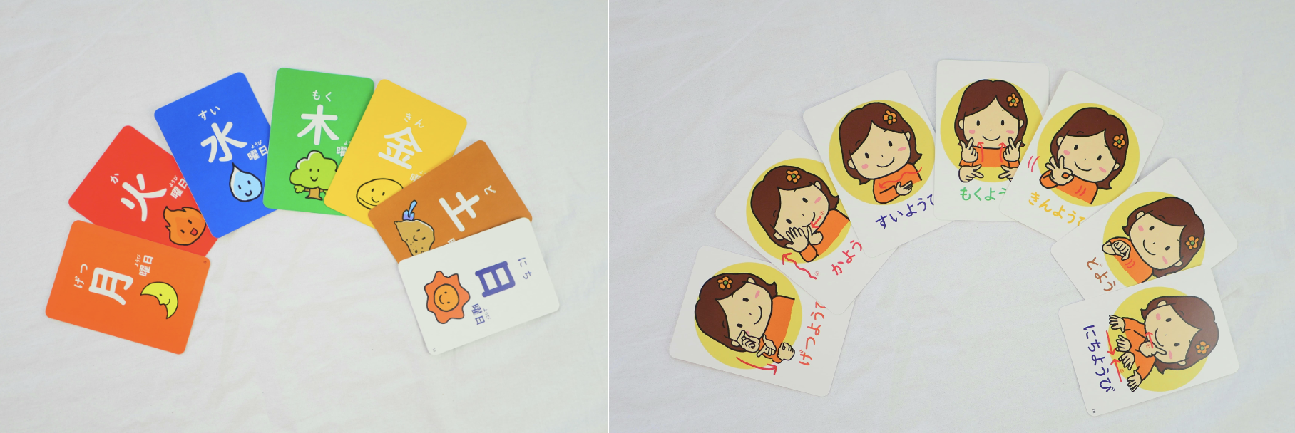 10年間の親子教室で使うために作った教材をベースに、香川大学教育学部坂井・宮﨑研究室監修、香川県立聾学校に手話監修のもと1年間の共同研究を行い、実際の教室で使っていただいた実践研究では、多くの先生方から好意的なご意見を頂き、それらを加えてより教育効果を高める教材「視覚学習みるみるカード」として発売する運びとなりました。
