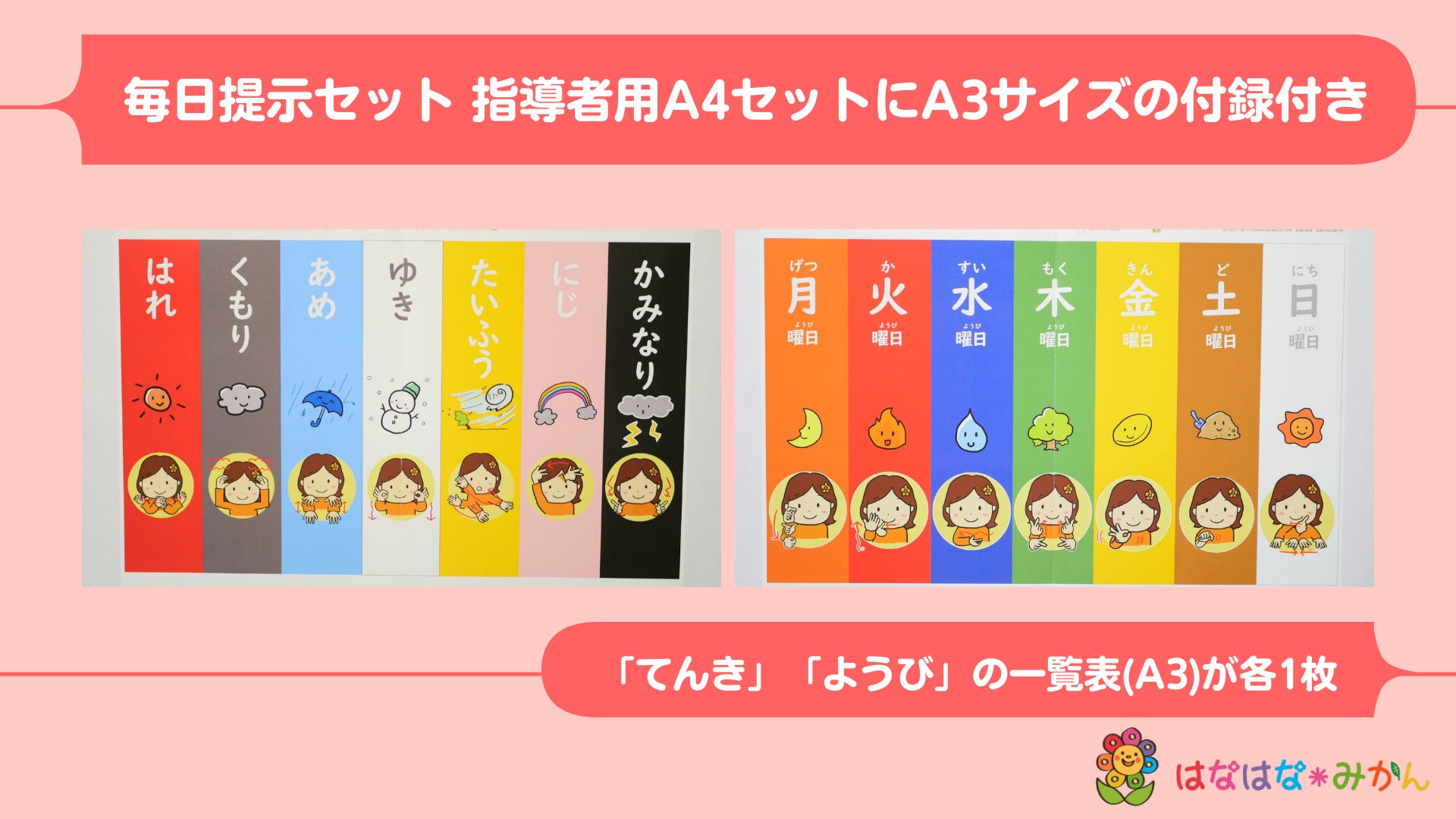 「てんき」「ようび」の一覧表が各1枚(合計2枚)