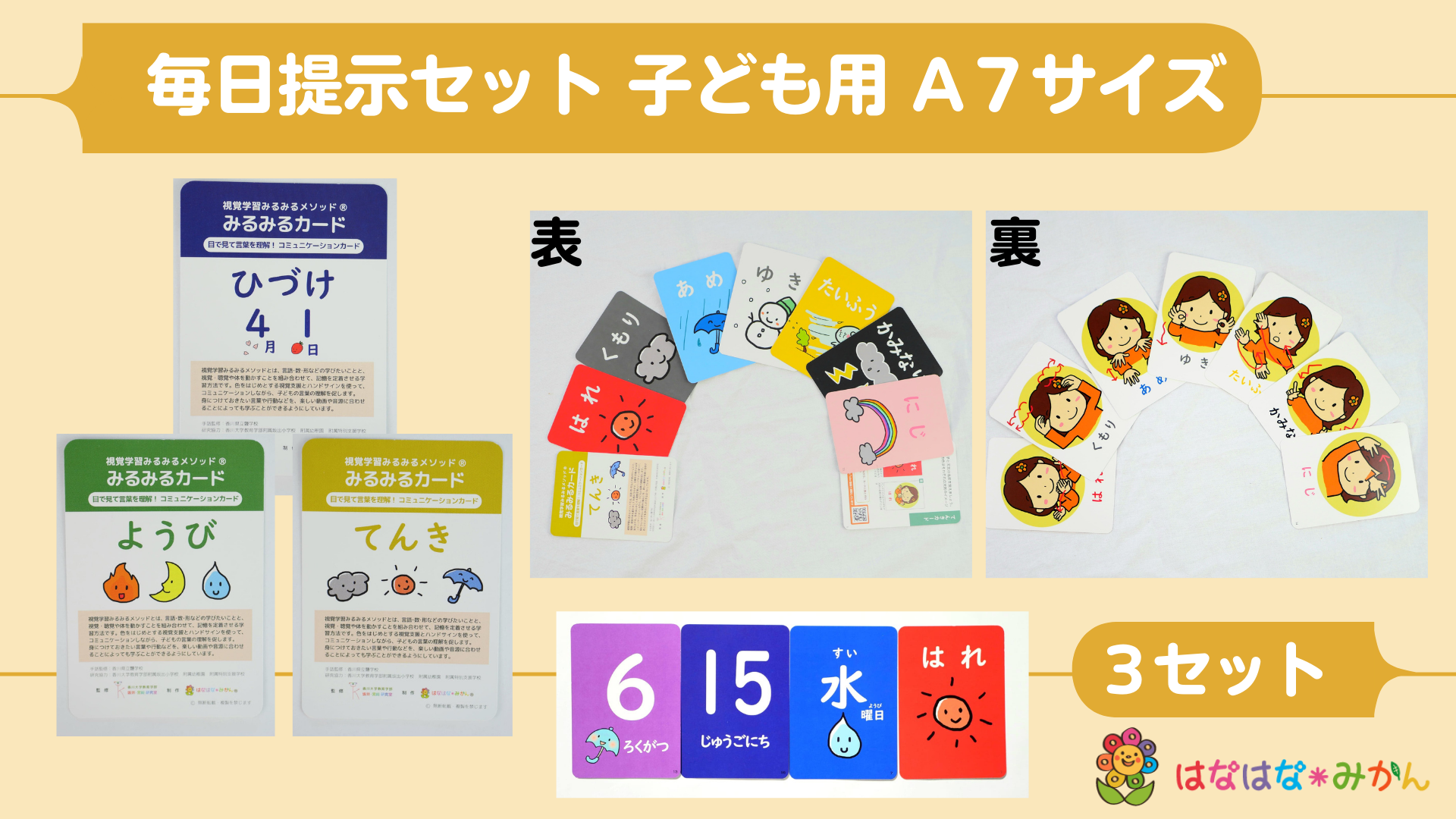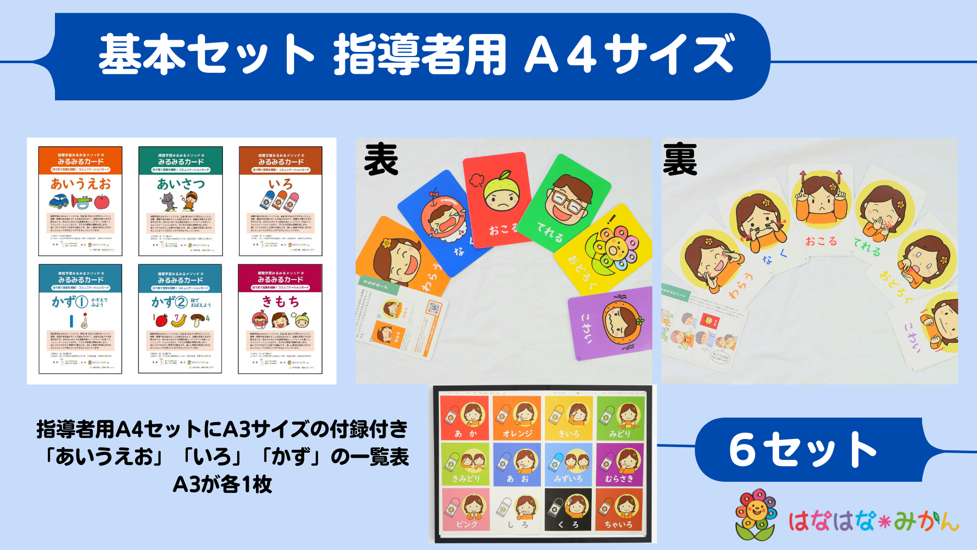 A4サイズは指導者が複数の子どもに見せるときに、A7サイズは手に持って使うときに適しています。