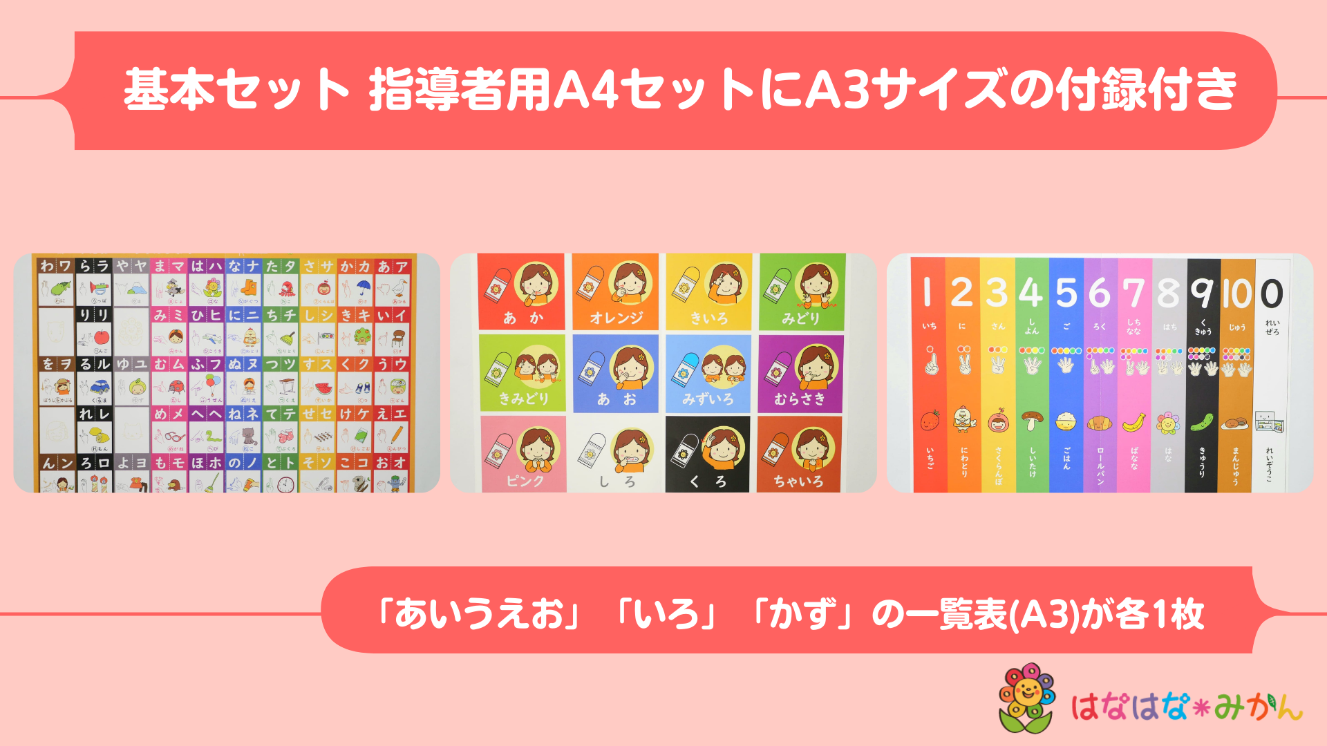 「あいういお」「いろ」「かず」一覧表が各1枚(合計3枚)