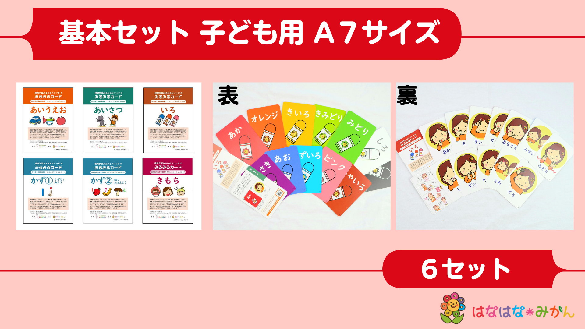 みるみるカードは、音声・色・体の動きなどの感覚と、数・ひらがななどの学習を組わせることで、「はないろキッズ」がみるみる成長するツールです。