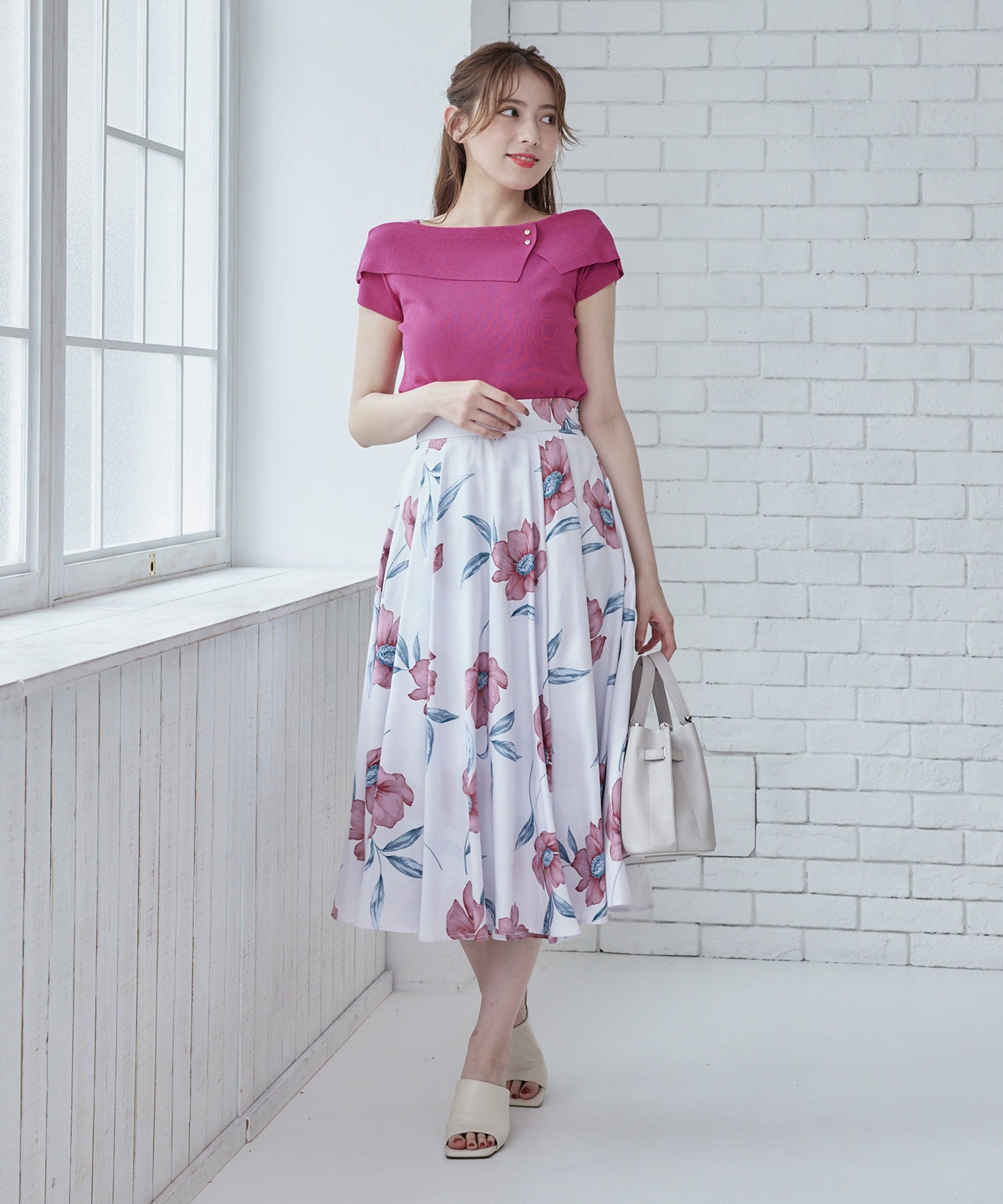 毎月必ずオリジナル柄のアイテムを提案しています。特に花柄スカートやワンピースはブランドの顔でもあり、京都の老舗メーカーと協力し、1から作りあげています。リピーターも多く、大人の女性でも着やすい、エレガントでさりげなくセンスが光るように仕上げています。