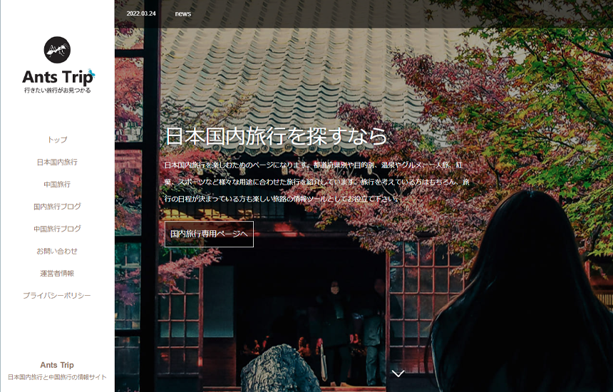 国内旅行・中国旅行の紹介専門サイト「Ants Trip」を7月15日に公開