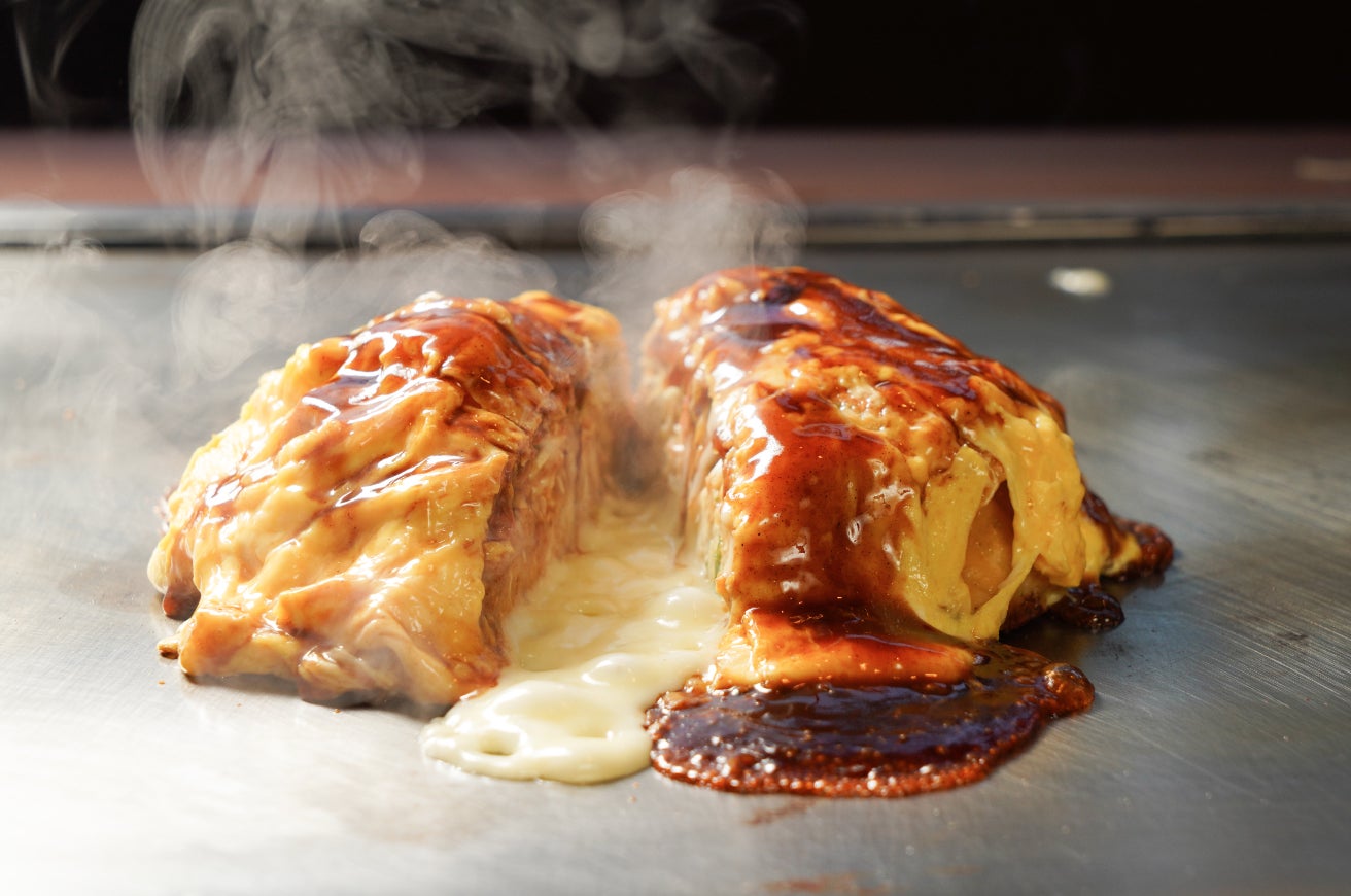 鉄板の上にソースの香りが広がりそこにとろりとしたふんわり濃厚卵の旨味を閉じ込めた逸品。