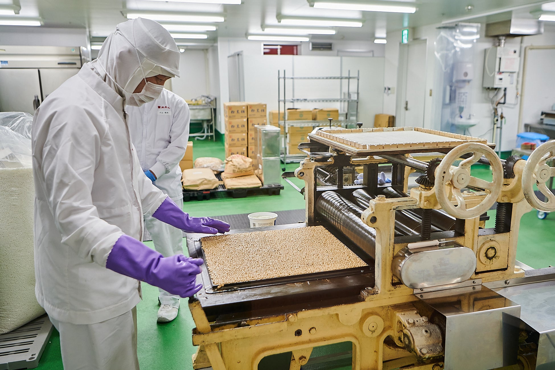 しかし、コロナ禍によって観光バスの団体旅行客・修学旅行生が激減し、団体旅行客の食事会場を運営することが困難となり、飲食事業を撤退し、雷おこしの製造工程をガラス越しに見学できる施設に2022年4月事業転換しました。
