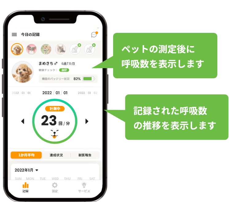 ご自宅でのペットたちが落ち着いた状態での呼吸数を測定、記録、管理をすることはお忙しい飼い主様にとっては負担の掛かるものになります。そこでPetiMetiが専用のアプリで管理をお手伝い致します!