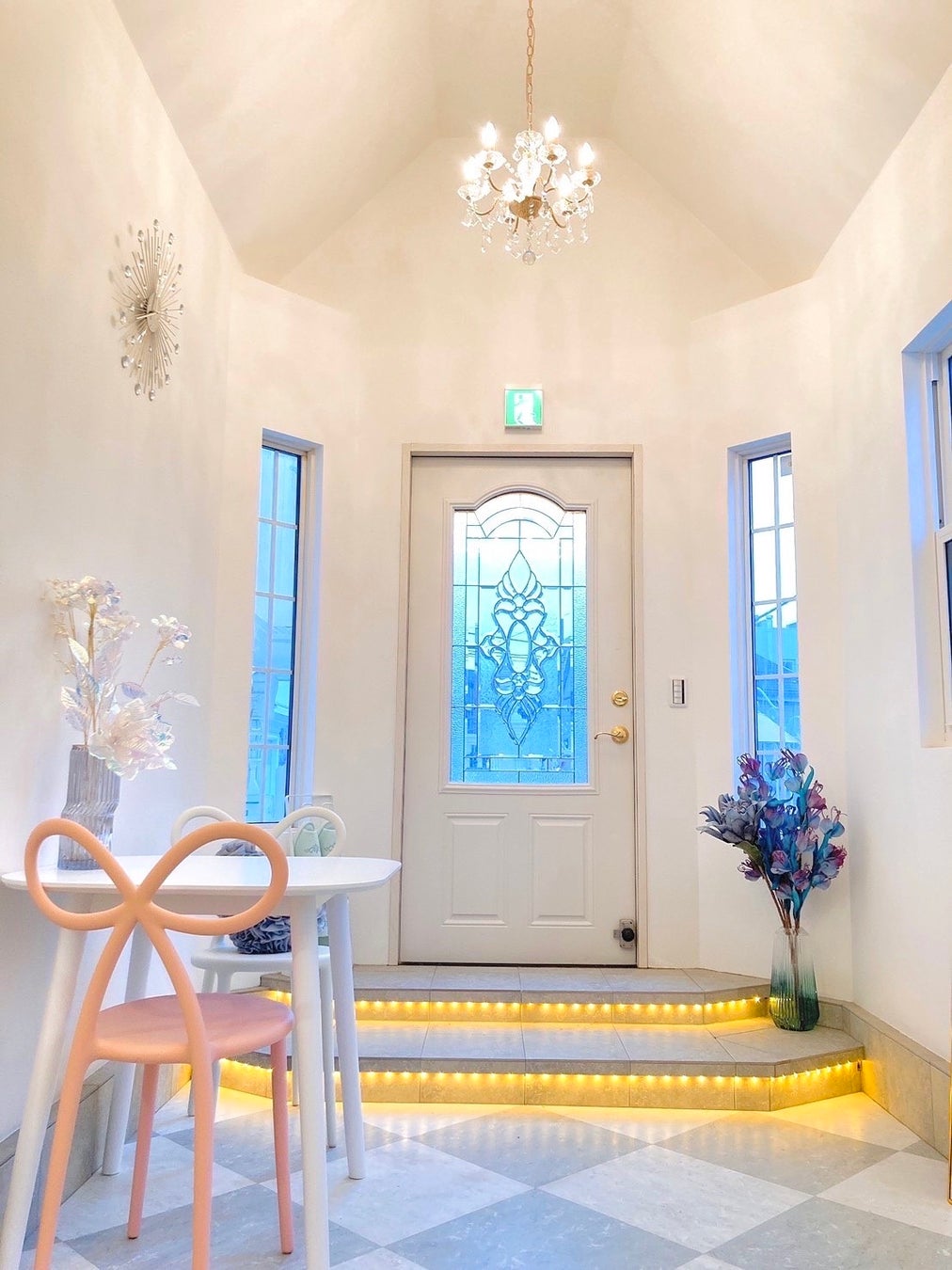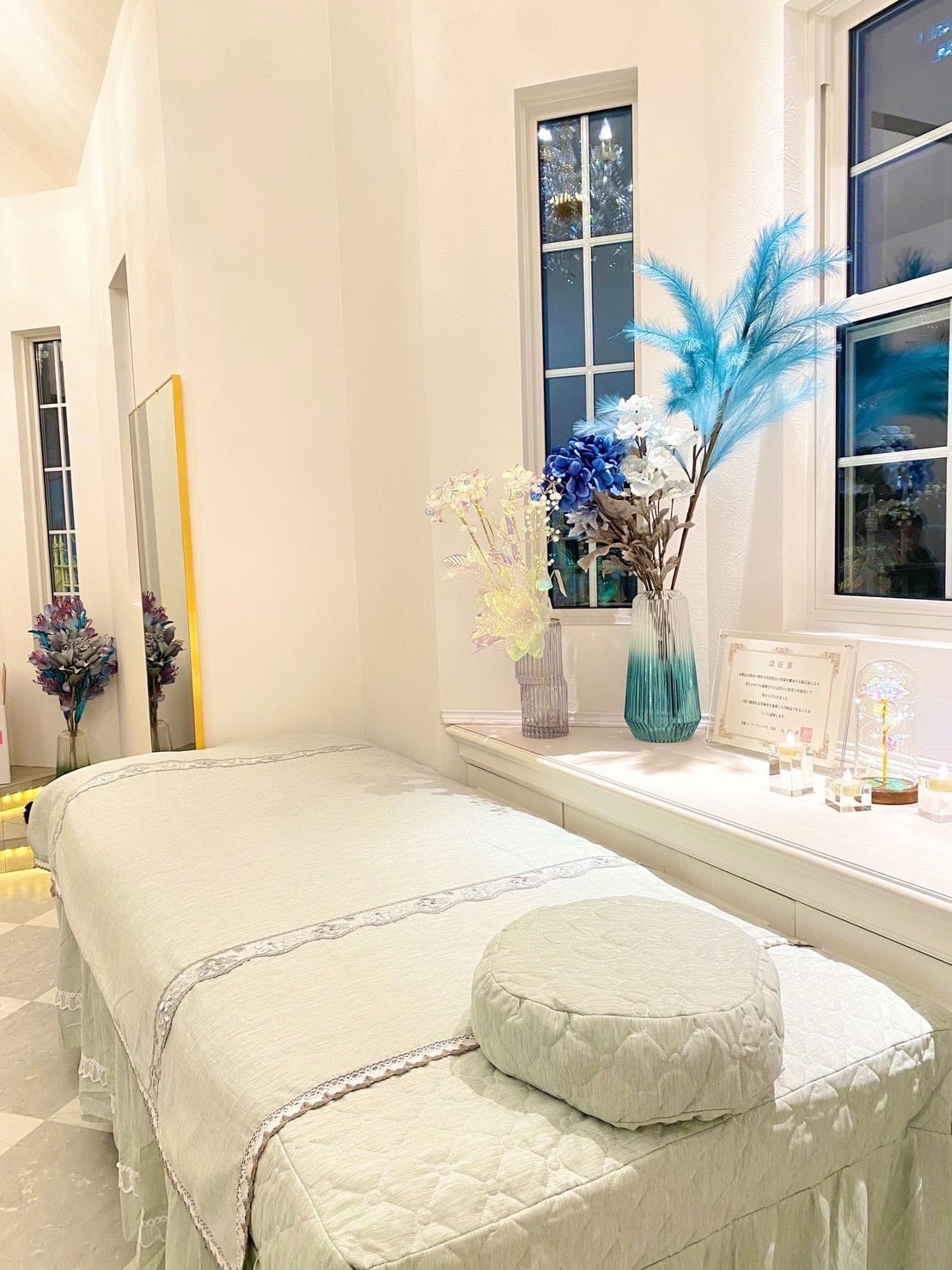 サロンが位置するのは原宿キャットストリート奥の閑静なエリアで、まるでお城のような建物。2階にある店内には高い天井にシャンデリアが装飾されており、女の子の大好きが詰まったSNS映えするガーリーなインテリアが広がっています。友人・恋人などとお出かけの合間にサロンで施術を受けながらプライベートな時間を過ごし、終わった後には韓国コスメでメイクアップして店を出る。綺麗になってそのまま遊びに行けるようなサロンとなっています。プロデューサーの葵ローズは、完全貸切のプライベート空間やSNS映えする店内など、従来のよもぎ蒸しサロンには無かった全く新しい美容サロンを細部までこだわって作り上げました。