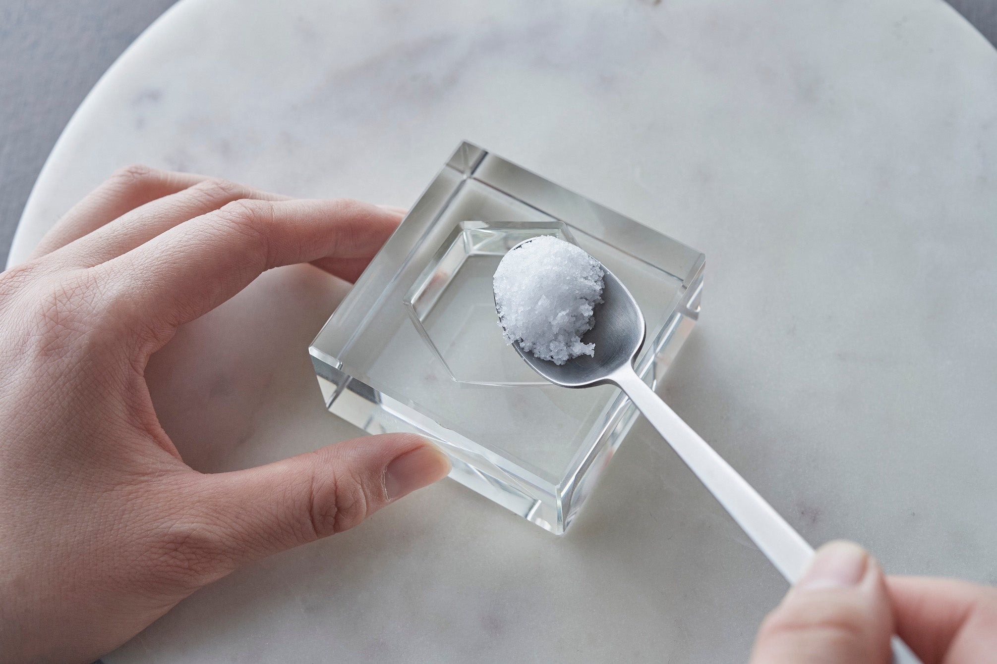 日本古来の風習をデザインすることにプレッシャーを感じましたが、日本の美しい文化や 風習にとても興味があるので引き受けました。自然との調和をイメージしながら、人と 人を繋ぎ、この風習を未来に繋いでいくミニマルなデザインにと考え、コンセプトは ピュアでクリーン、200 年先も残るタイムレスなものであること。大事なことは、邪気 を祓い、幸運を呼び込む、お清めの “ 塩 ” を極力目立たせることと塩を入れる形は