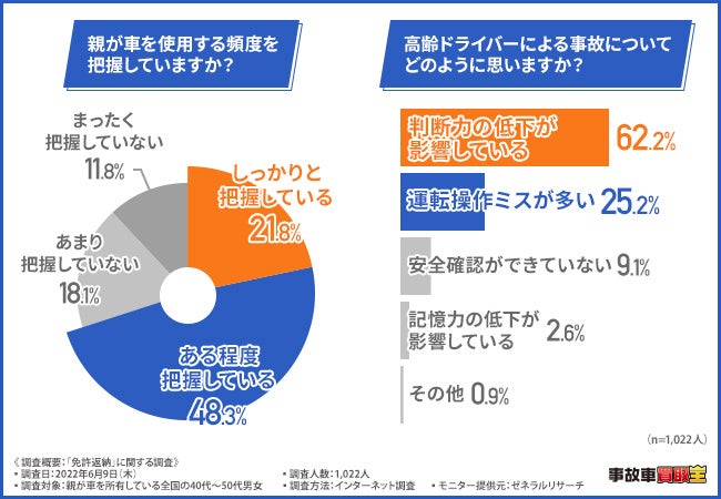 そこで今回、廃車・事故車買取専門『事故車買取王 八王子店』(https://www.jikosyakaitoriou.com/index.php)を運営する株式会社Santa Corporate(サンタコーポレート)と「埼玉店」「町田相模原店」「横浜店」「山梨店」が共同で、親が車を所有している全国の40代~50代男女を対象に、「免許返納」に関する調査を実施しました。