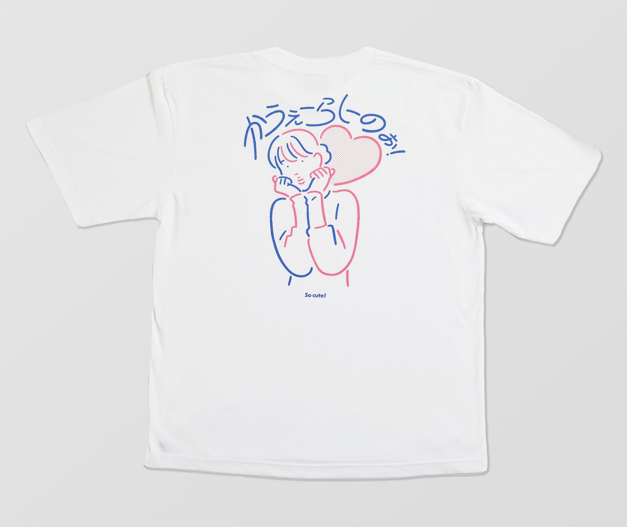 「かうぇーらしーのぉ!」は「可愛らしいね!」という意味の岡山弁です。特徴はなんといっても独特のイントネーション。可愛らしいポーズの女の子を大きくバックプリントにしたデザインは、ストリートライクで遊び心もあるアイテムです。
