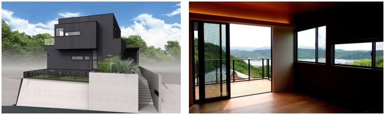 貸別荘の建つ南あわじ市福良のうずしお台には、現在5棟の貸別荘が建設中。愛犬と泊まれるドッグヤード付きの棟や、ダイナミックに海を見ながら会議ができる棟、騒音が気になるファミリーには奥まった立地の棟など、ニーズに合わせて選ぶことが可能。24帖の広々としたLDKはいずれも2階にあり、大胆な開口部の設計により淡路島の気持ちのいい海と空につながっています。