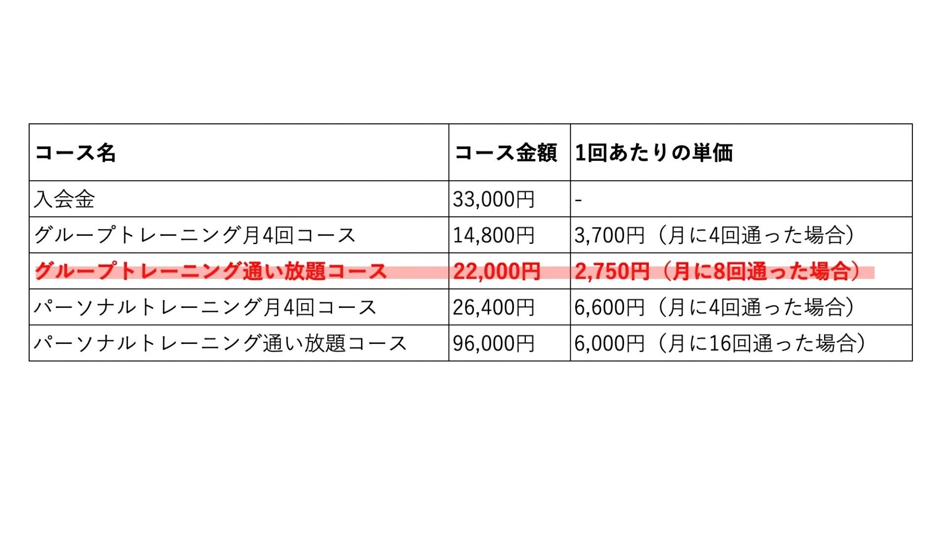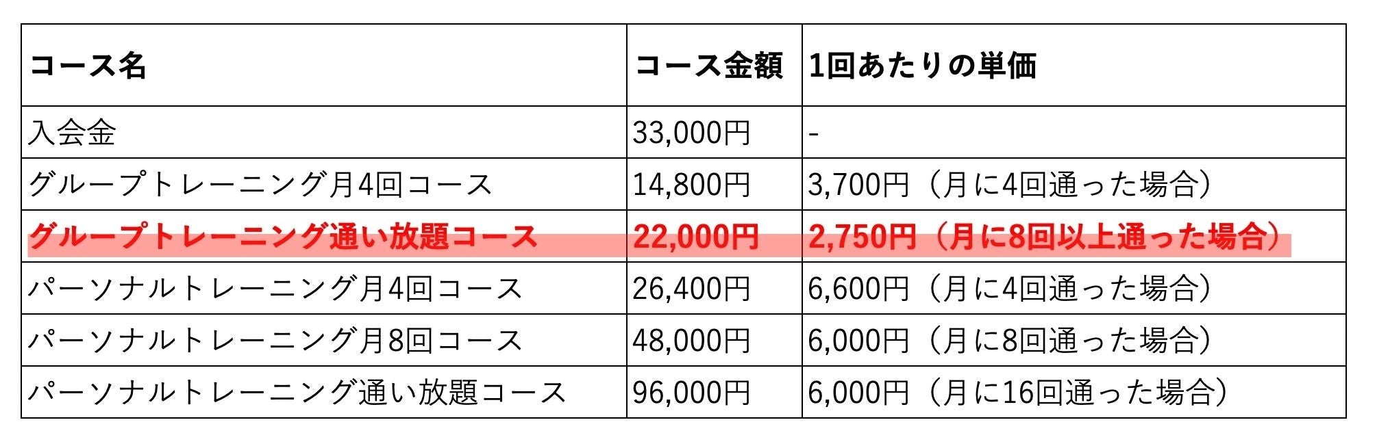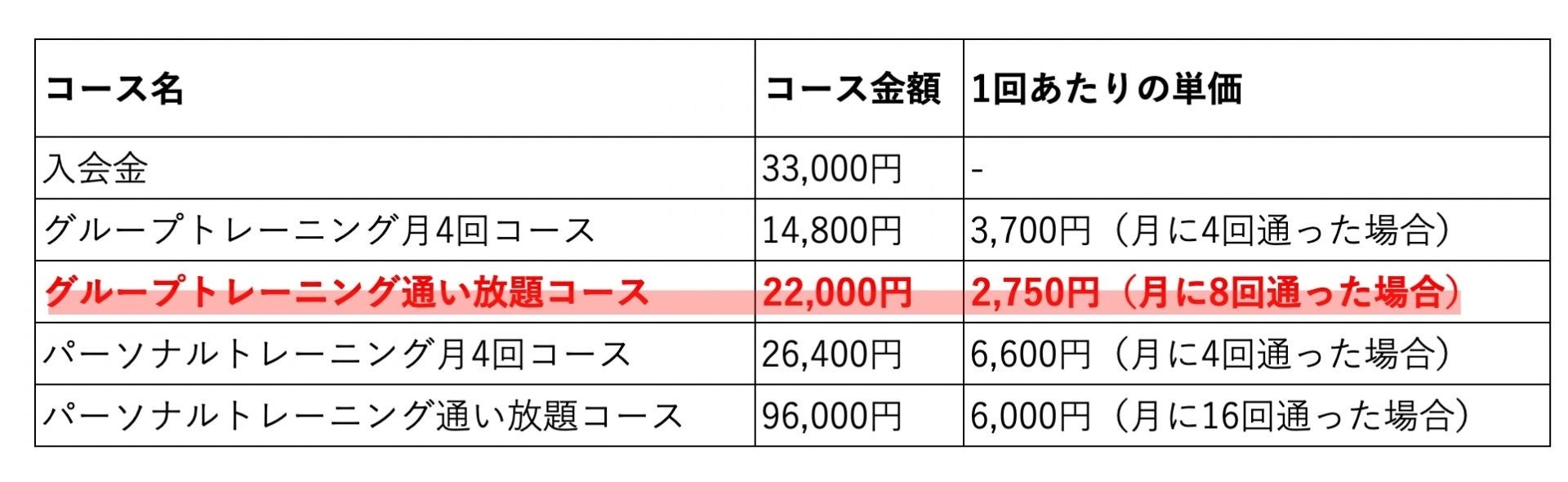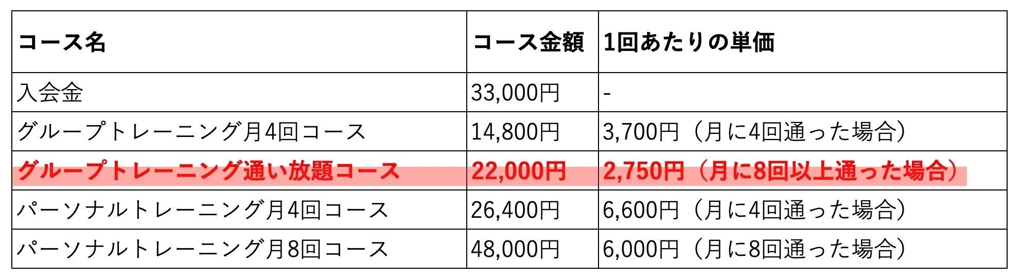 また、通い放題プランを導入することで運動の習慣化に加え1回あたりの料金を上記より更に抑えることができます。