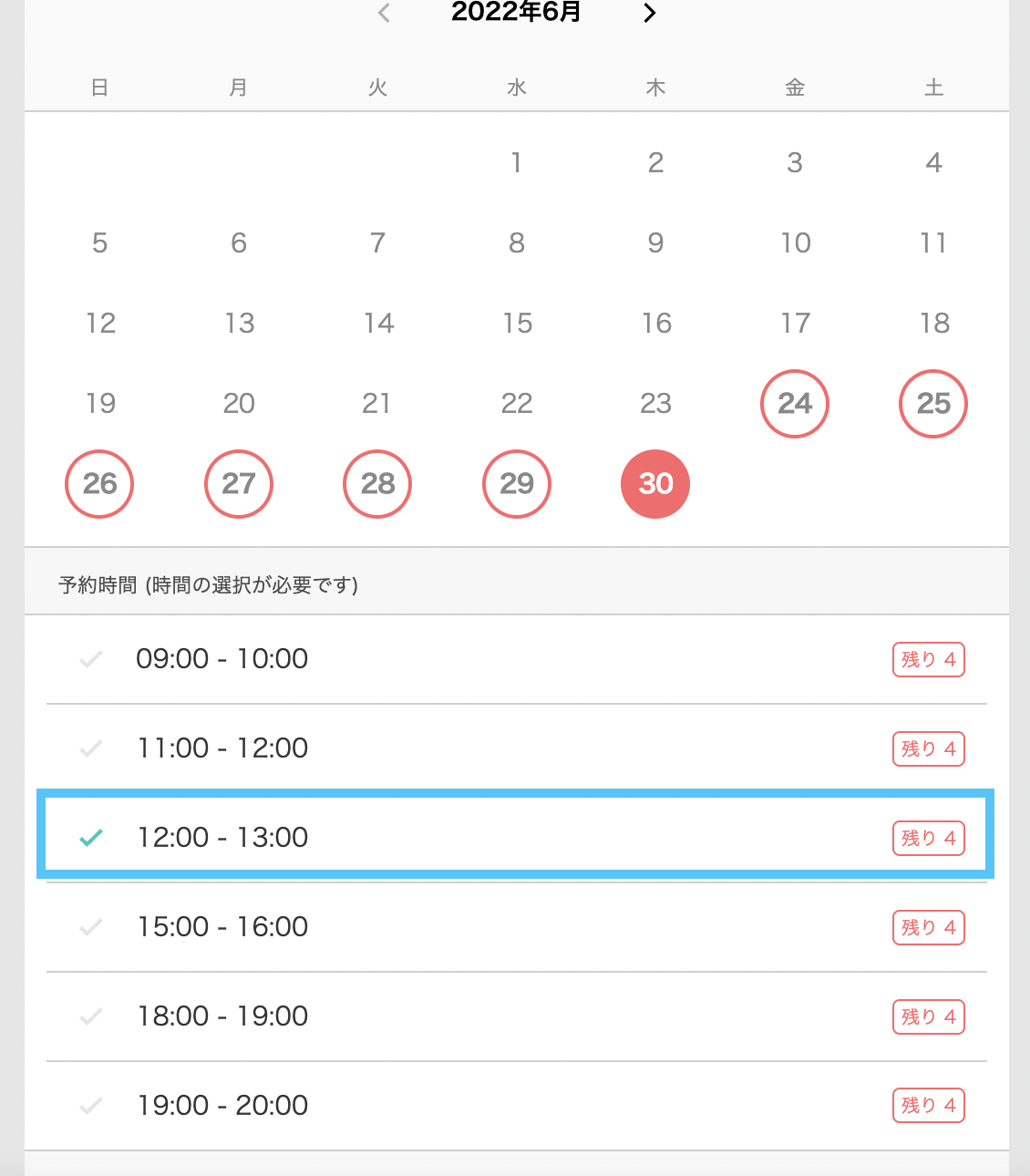時間割の予約制となっており会員様は専用の予約サイトで空き枠を確認して予約頂けます。トレーニング時間はお着替え含め1時間となっております。