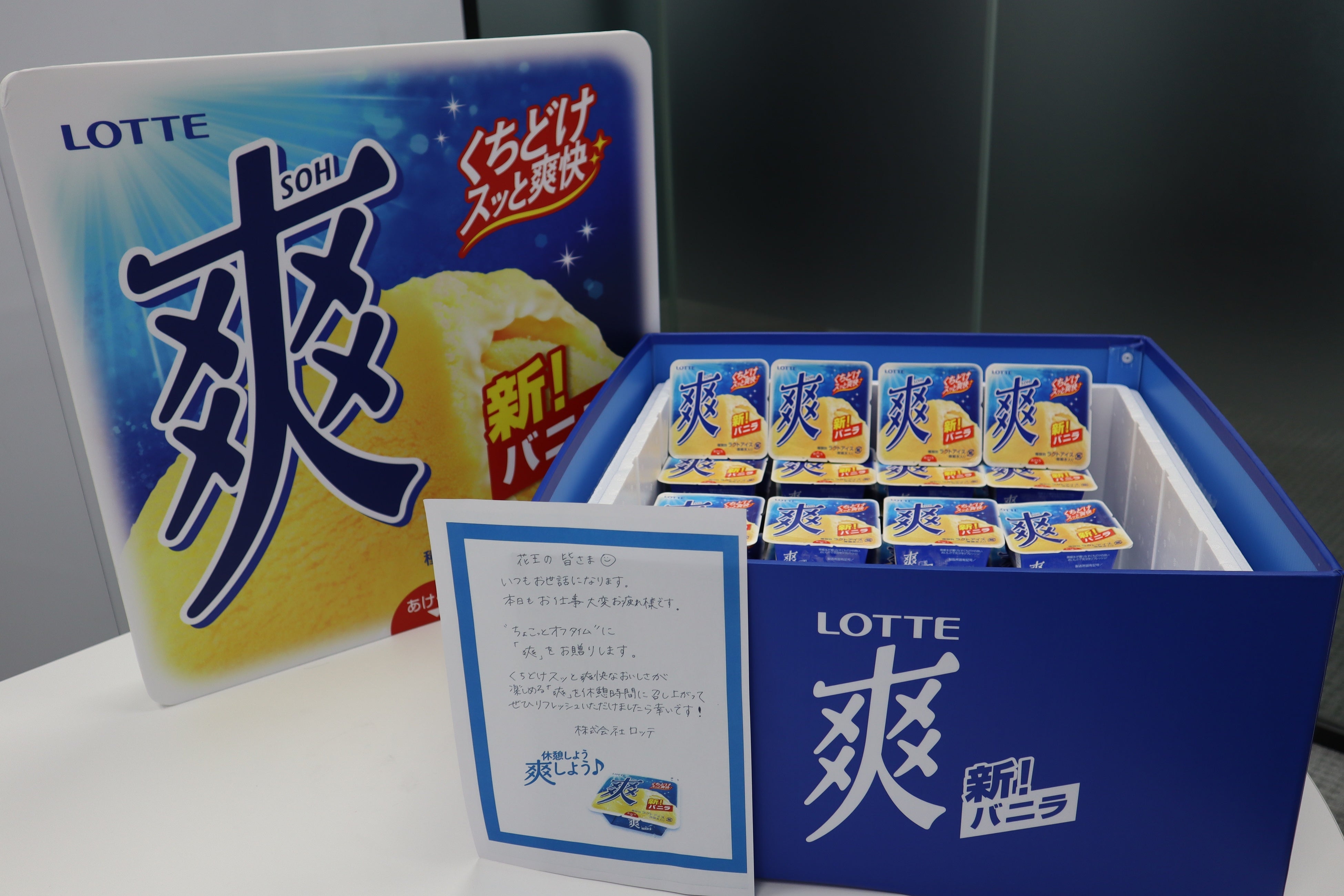 そんな「爽」を、仕事、勉強、家事など何かを一生懸命頑張る合間に食べてリフレッシュし、また頑張ろうという気持ちになっていただきたいという想いから、「休憩しよう爽しよう♪」というキャッチフレーズのもと、「休憩」という時間に寄り添ったコミュニケーションを展開しております。