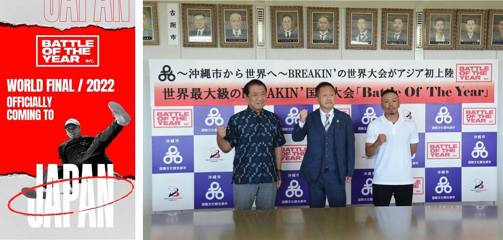 一般社団法人アーバンスポーツ&カルチャーコミュニティー(以下、USC社)は、アジア初上陸となるブレイクダンスの世界大会「Battle Of The Year」(以下、BOTY)決勝大会を、2022年12月3日(土)沖縄アリーナ(沖縄県沖縄市)で開催いたします。この開催を記念して、6月24日(金)沖縄市役所にて概要発表記者会見を行いました。