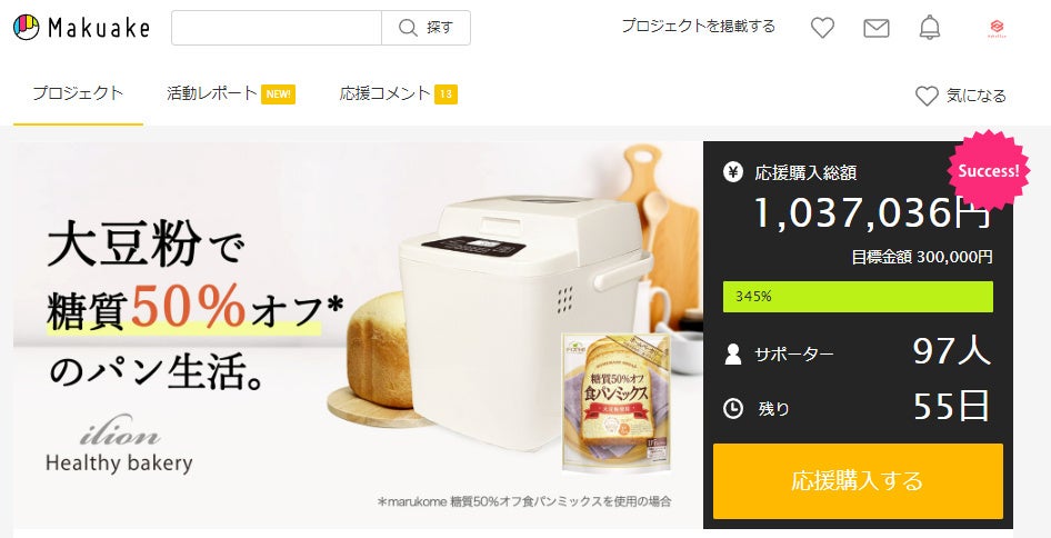 ◆Makuake「 ilion ヘルシーベーカリー 」プロジェクトページ