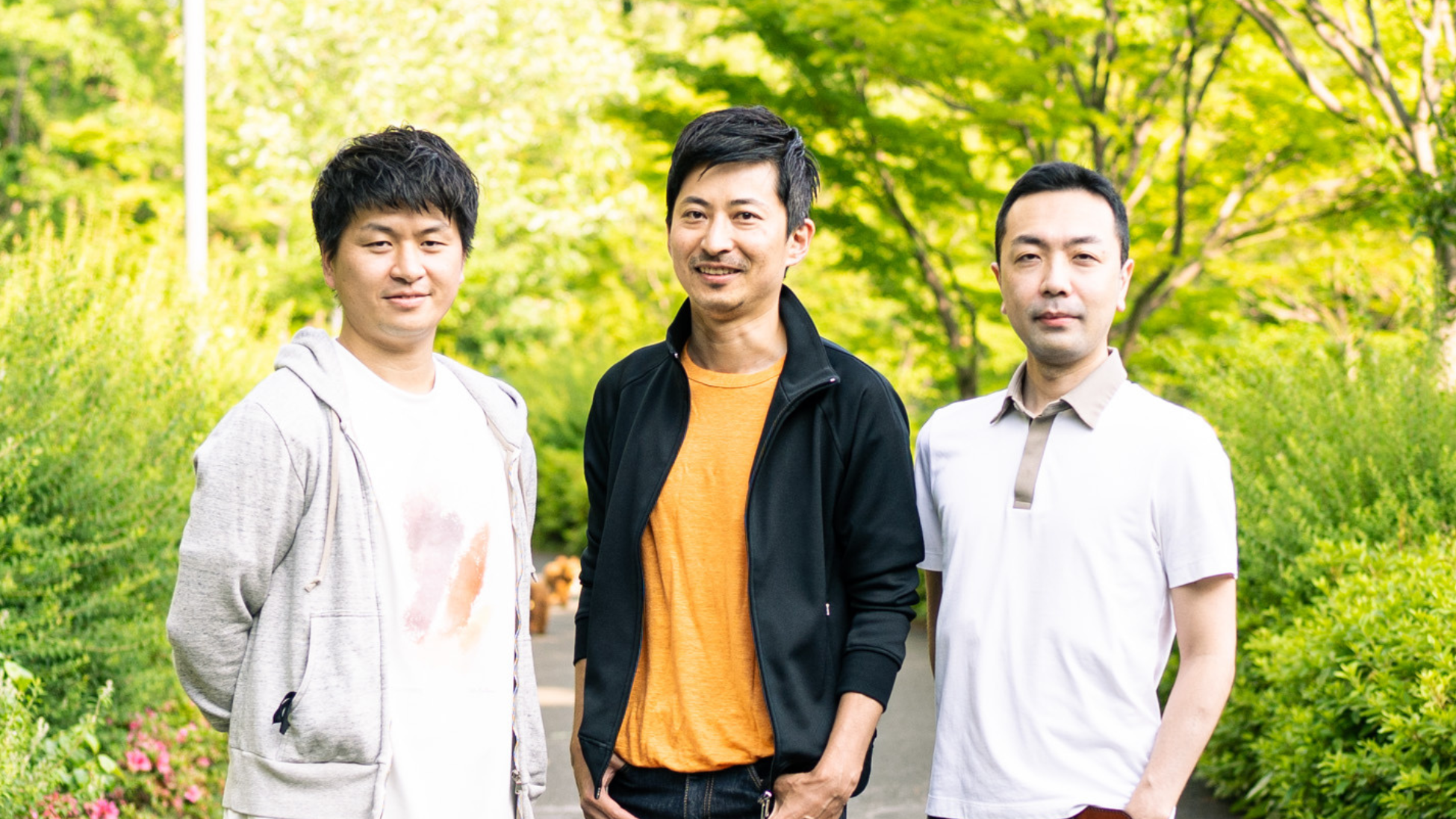 (左) PM 齋藤 大輔、(中)CEO 見原 思郎、(右)CTO 上田 哲広