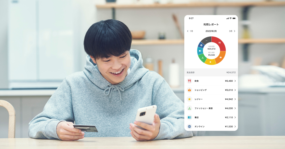 買い物履歴を見える化し、利用がある度に親へも通知がいくように設定できます。突然の高額出費など、トラブルの早期発見にも活用できます。