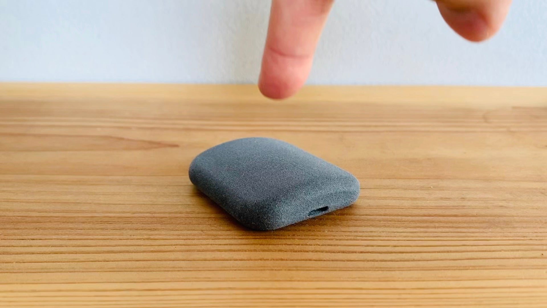 ポケットに入れてもかさばらない。小石サイズで重さわずか20g。ボタン電池、省電力でずっと使える。