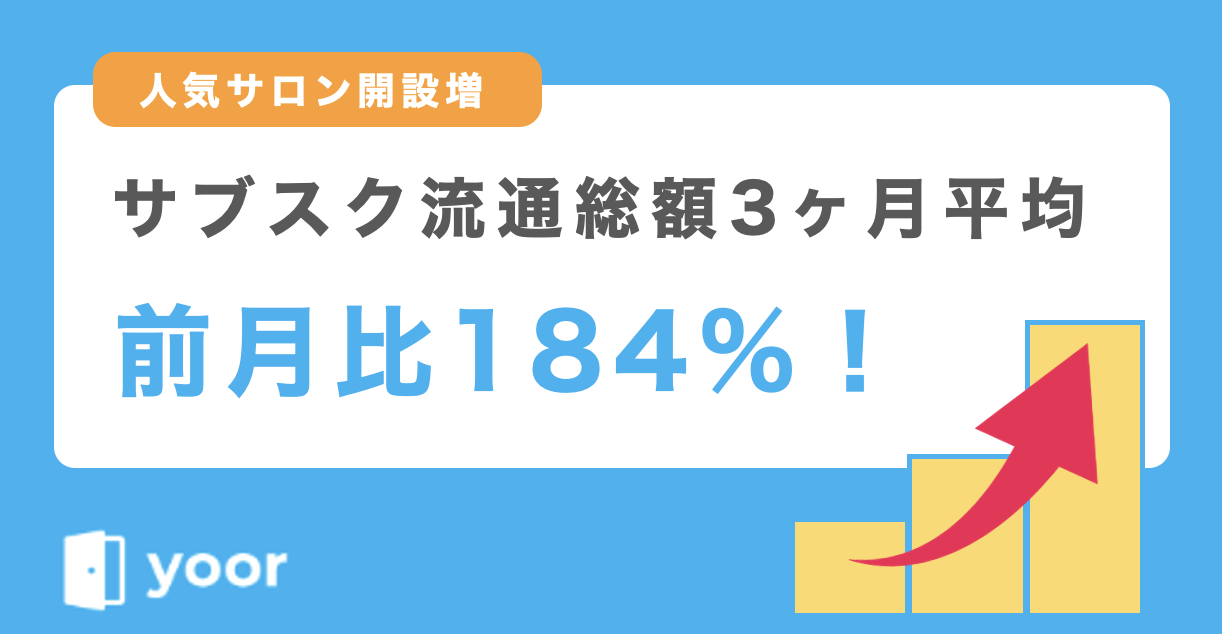 サブスク流通総額が3ヶ月平均で前月比184%増加。今日から始められるオンラインサロン「yoor(ユア)」で人気サロンが急増中