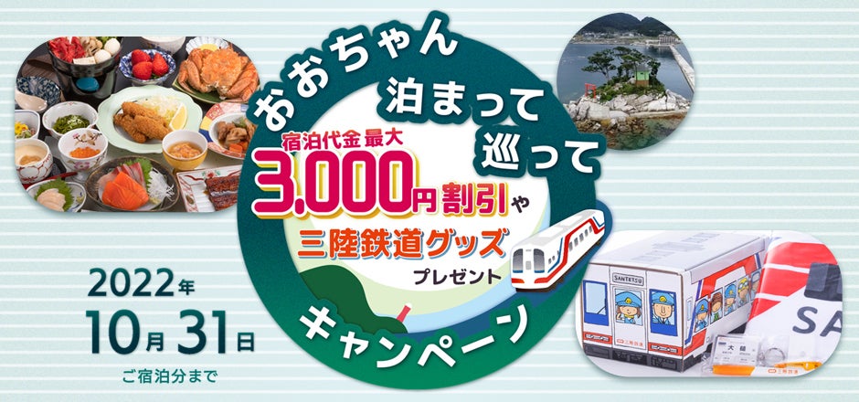 宿泊代金から最大3,000円割引き&三陸鉄道グッズプレゼント