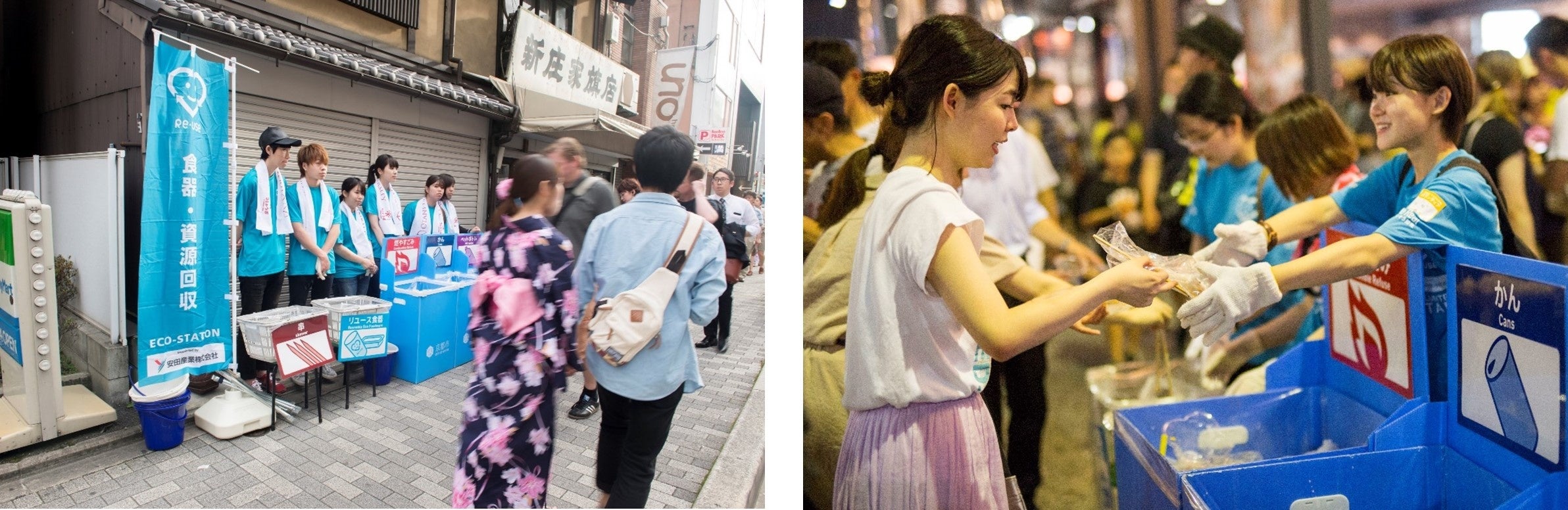 そこで毎年約2,000名のボランティアスタッフの協力を得て、ごみの分別の呼びかけ・リユース食器への切り替えの推進、回収拠点エコステーションの設置など日本最大級のごみの減量に取り組んでいます。