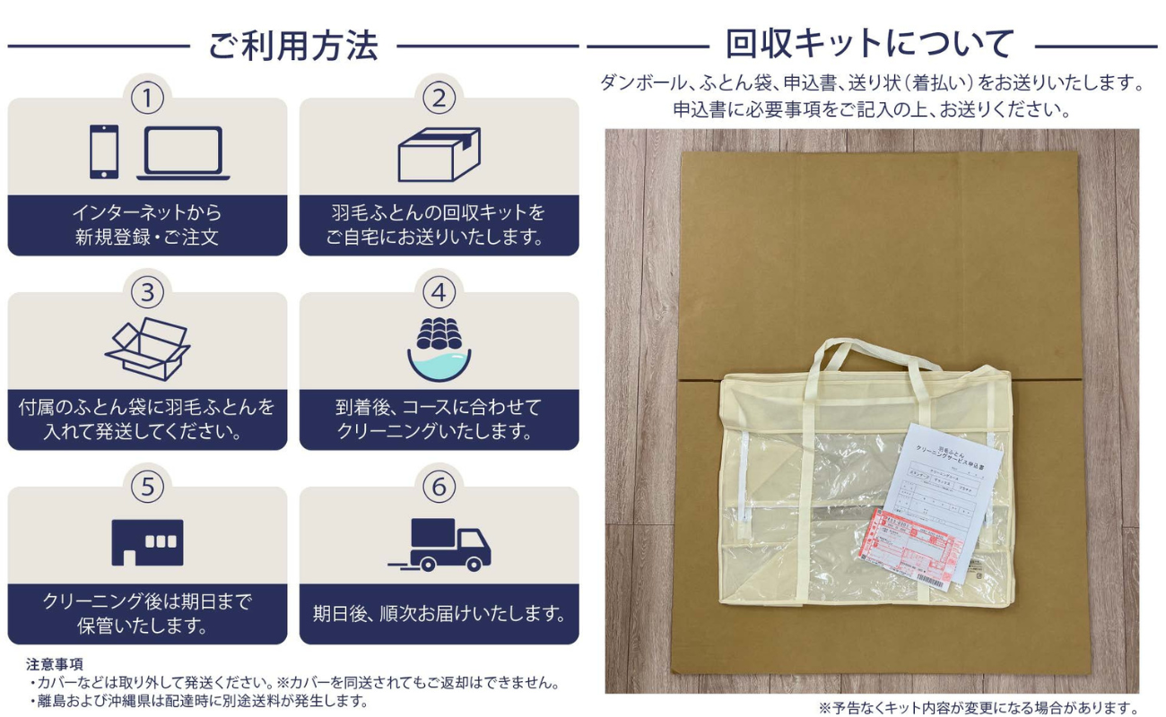 ・ご注文後に羽毛ふとんの回収キットをお送りいたします。