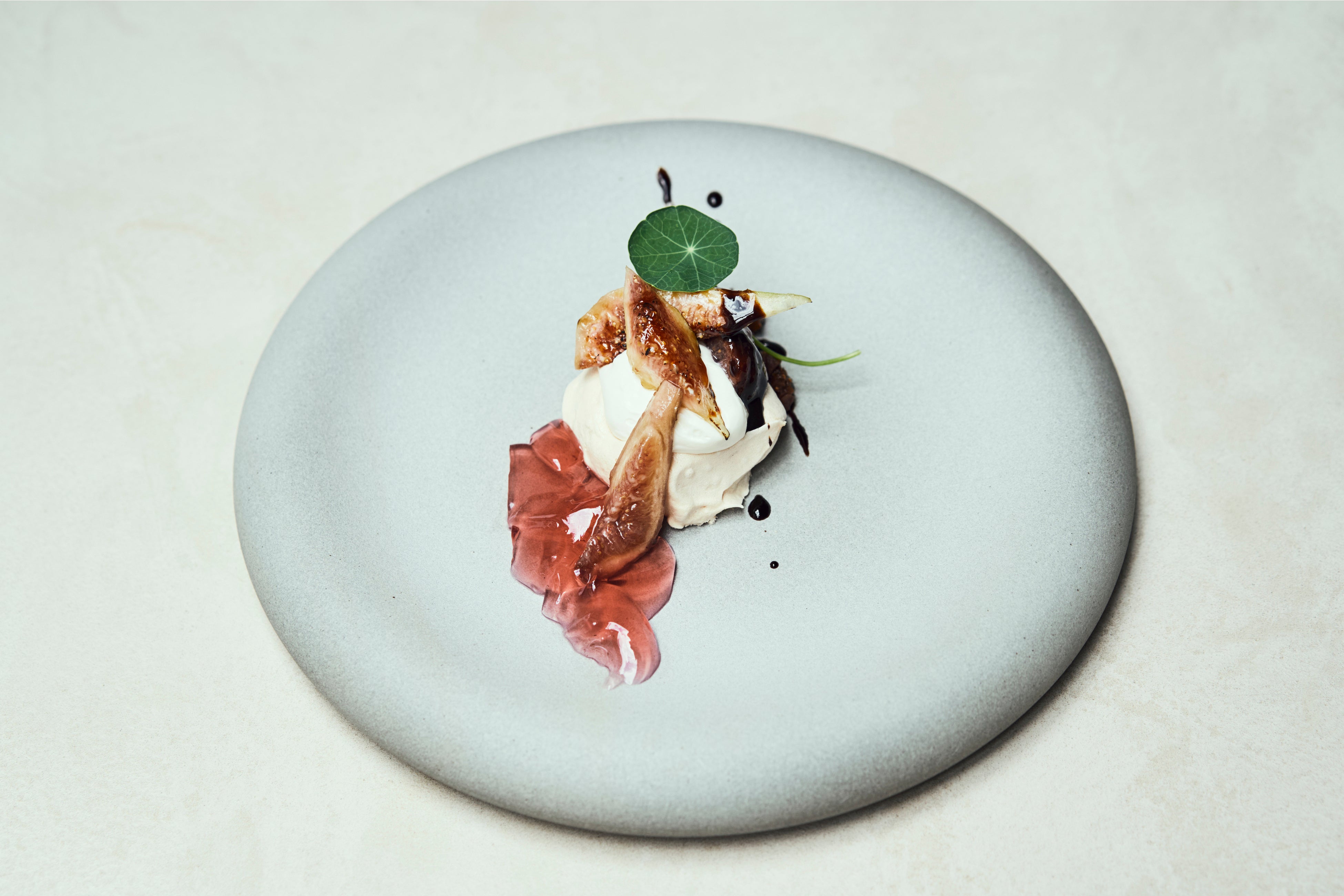 ビールの苦味とパッションフルーツの酸味、ナタデココと泡など、色々な味わいと食感をお楽しみいただけます。(10)無花果 のパブロヴァ