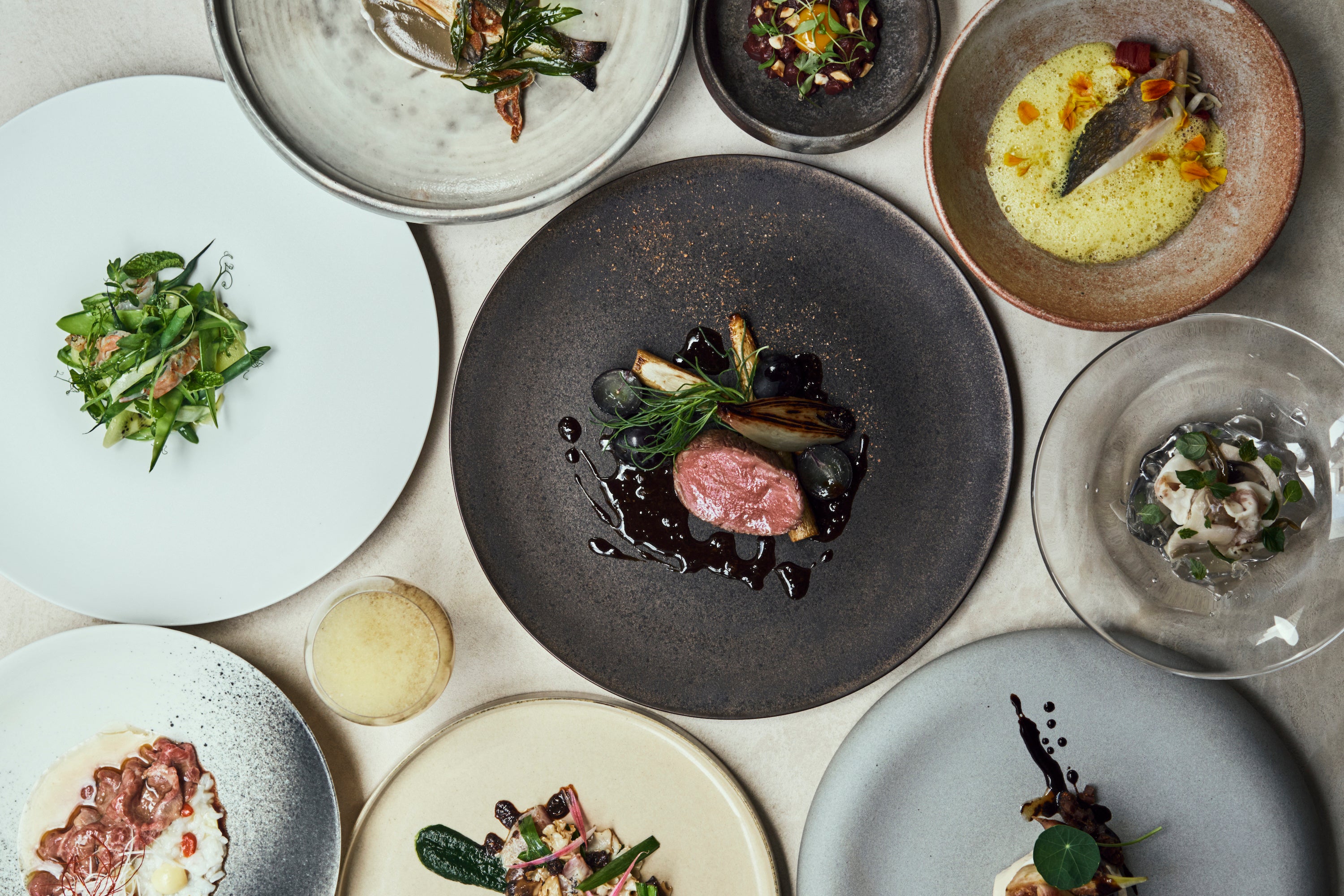メニューは季節ごとに変わるおまかせのコースのみ。エスニック風に味付けしたカンガルーや、日本料理でよく使われる鮎をコンフィ、ソース仕立てにするなど、他では出会えない食材の組み合わせや味わいをお楽しみいただけます。