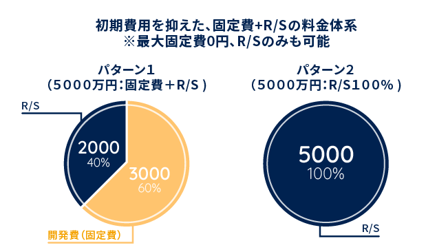開発費用の最大100%をレベニューシェア払いにすることで、初期開発費を抑えキャッシュフローの向上を支援