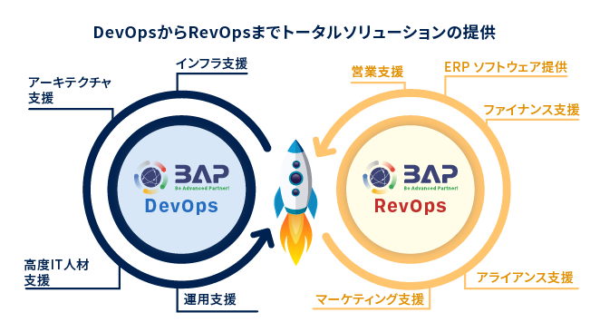 また、DevOpsからRevOpsまでトータルソリューションを提供し、プロダクト設計の上流から参画することができます。そのため、スピード感のある開発を受けることができ、市場に迅速に対応することができます。