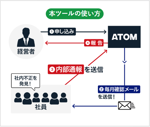 通報内容はアトム法律事務所を通じて、会社代表者の方へ共有されます。
