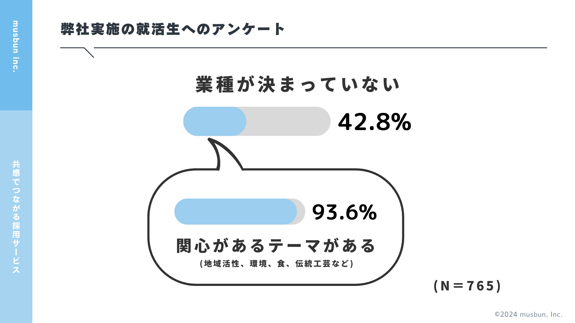 業種が未定の学生の約90%が何らかのテーマに関心を持っており、例えば「地域活性化」などが挙げられる。