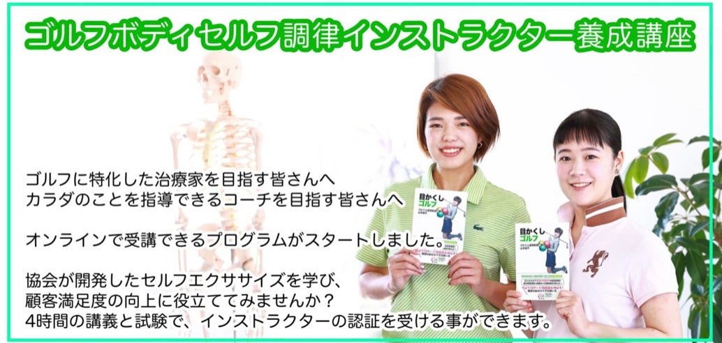 また、今後ゴルファーの高齢化からゴルファーが痛みなく健康にゴルフを楽しめる、ゴルフのパフォーマンスと健康を同時に向上させるニーズが高まることが予想されており、今回身体にまつわるお仕事の治療家やトレーナー、ゴルフにまつわるお仕事のコーチやインストラクターを対象に、お客様に対して簡単にセルフでお身体の変化を感じられるセルフ調律を指導できる講座を開催することになりました。