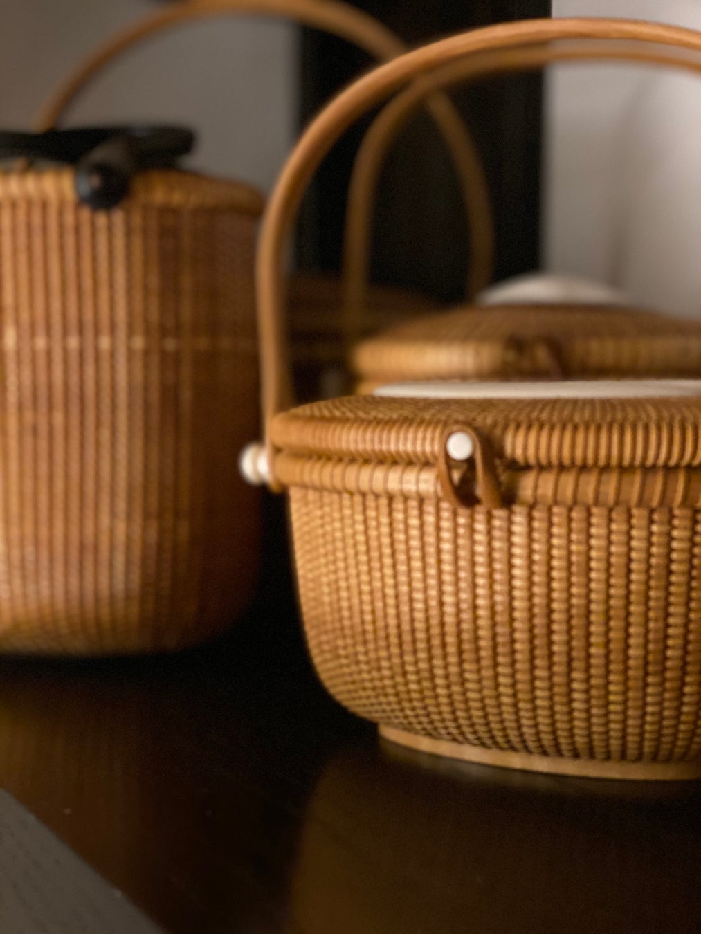 アメリカの伝統工芸品として尊重されてきたナンタスケットバスケットは、用途によって形もデザインも様々で、発祥の地が捕鯨で栄えていたこともあり、海やクジラなどをモチーフとする装飾品が添えられているものも多くあります。
