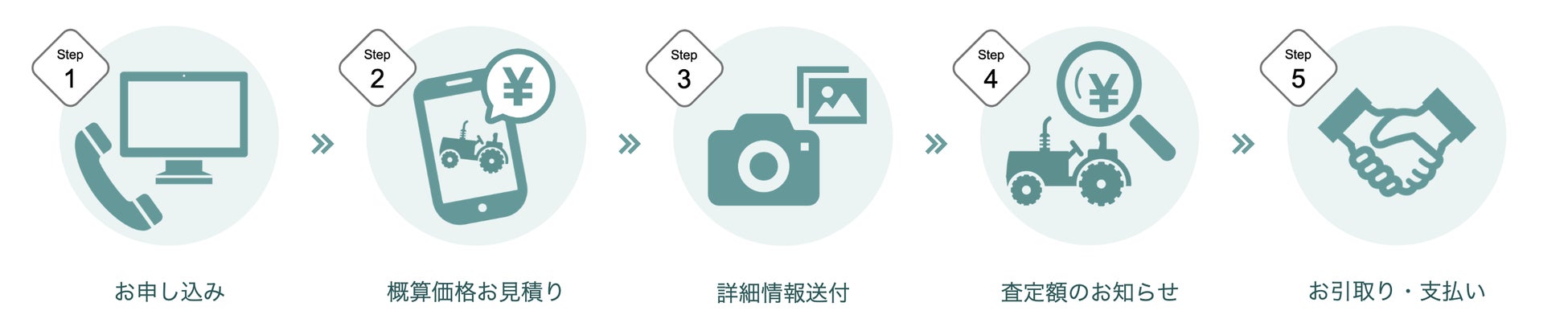 クロバト農機買取は、初めての方でも安心の簡単5ステップで査定から買取までネット完結で行います。