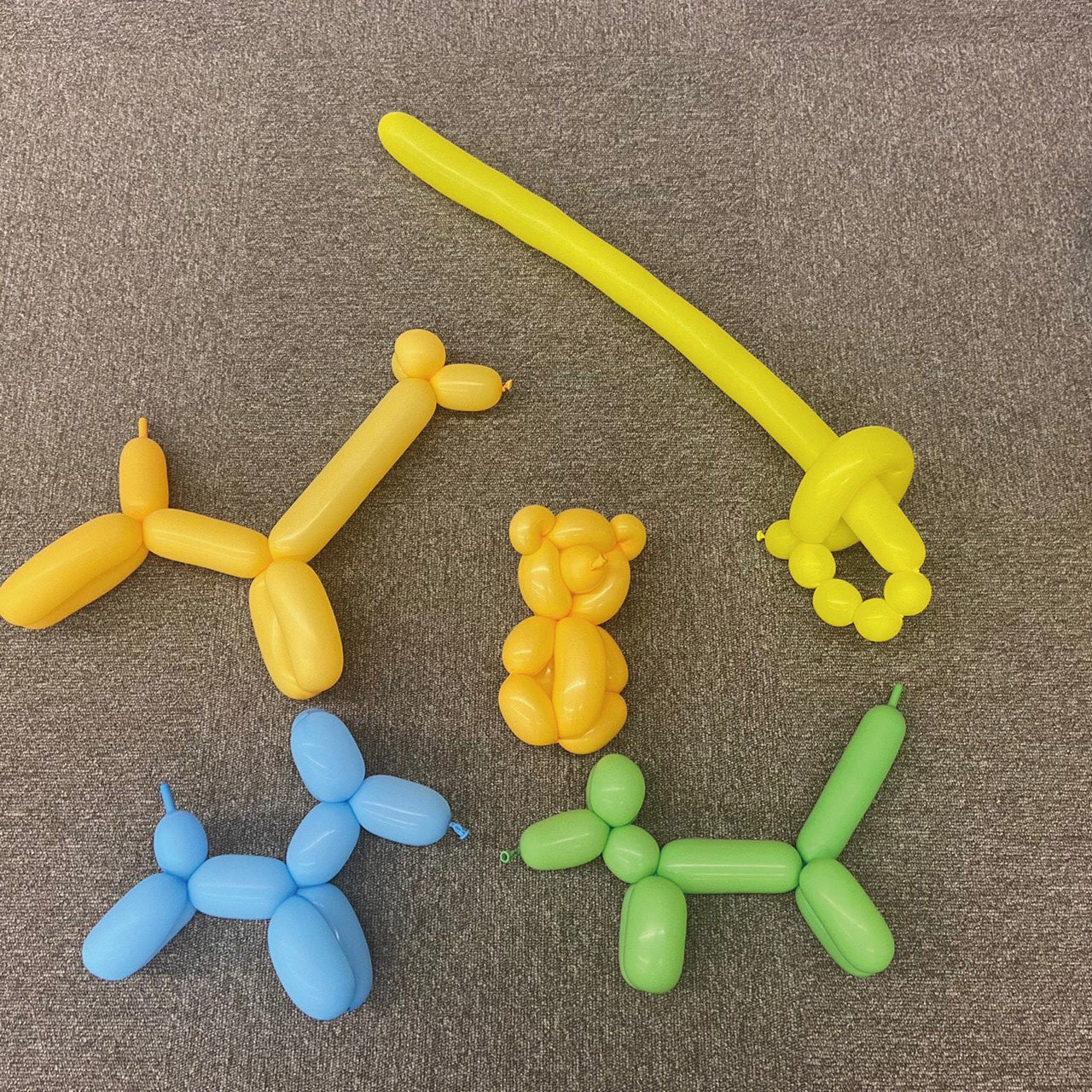 バルーンを使って犬、うさぎ、剣のバルーンアート作り体験。だれでも簡単にできます。気軽にご参加ください♪