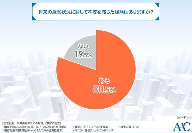 「将来の経営状況に関して不安を感じた経験はありますか?」と質問したところ、『ある(80.5%)』『ない(19.5%)』と、実に8割以上の方が不安を感じたことがあると回答しました。