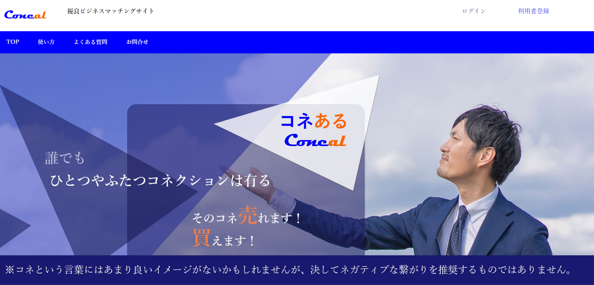コネが欲しい人とコネを持っている人をマッチング 「コネある」で健全なコネクションを使って新規営業を支援。