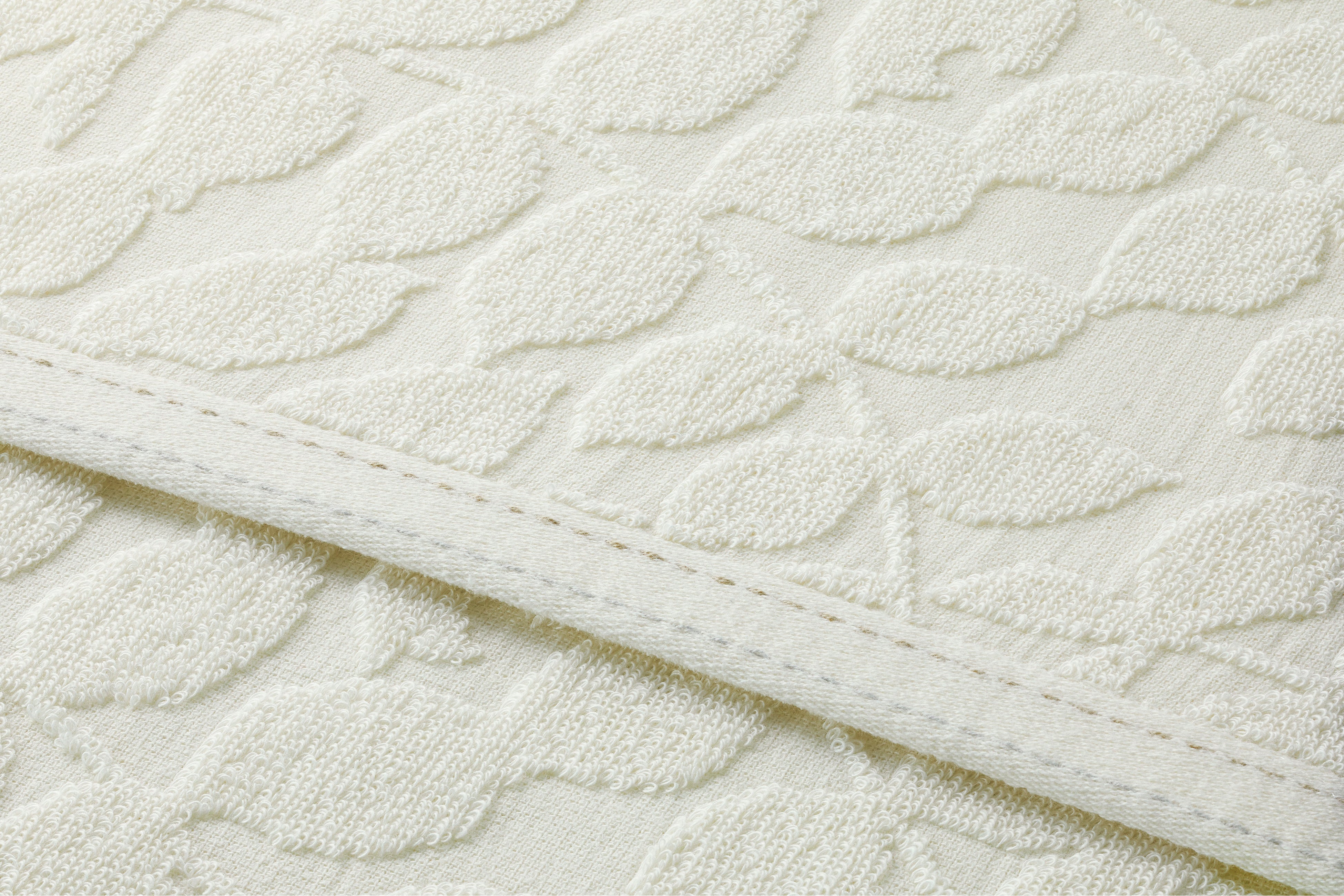 地球環境に配慮したタオルらしく、タオル表面には葉っぱのデザインが浮き出るような凹凸ジャカード織り加工が施されています。