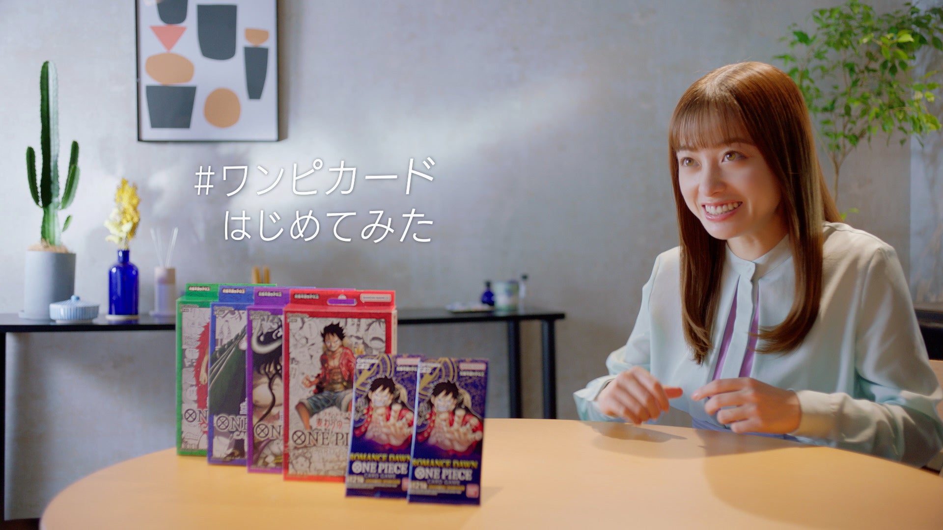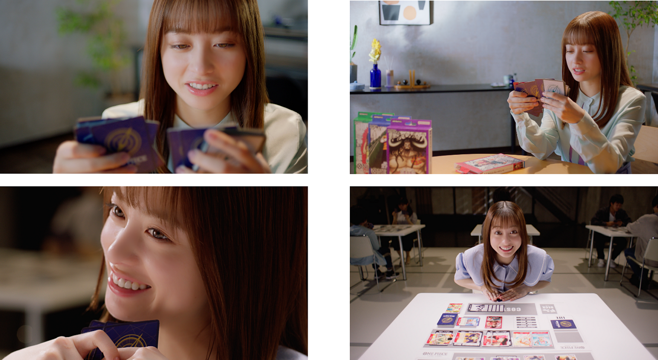 発売を記念した新CMでは、『ONE PIECE』を小学生のときから家族で愛読し、大ファンと言う橋本環奈さんを起用いたしました。橋本さんが「ONE PIECEカードゲーム」を夢中で楽しむ姿や、デッキを開封し推しキャラクターに歓喜する姿をぜひお楽しみください。