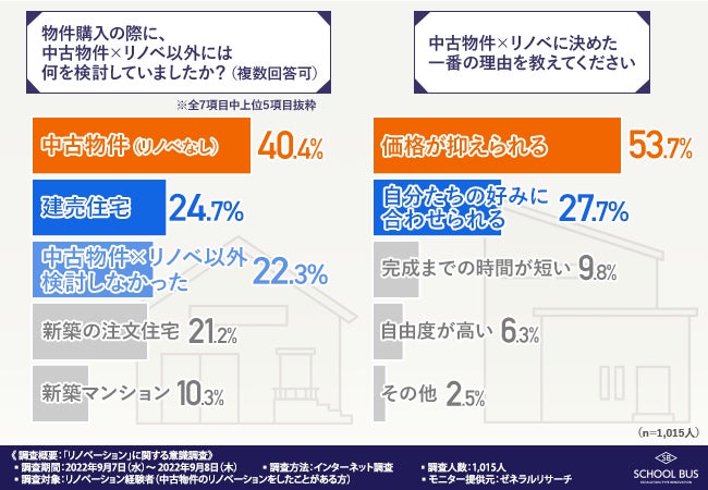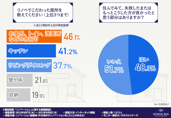 そこで、リノベ事業を手掛けるスクールバス空間設計株式会社(https://www.school-bus.jp/)は、全国のリノベーション経験者(中古物件のリノベーションをしたことがある方)を対象に、「リノベーション」に関する調査を実施しました。