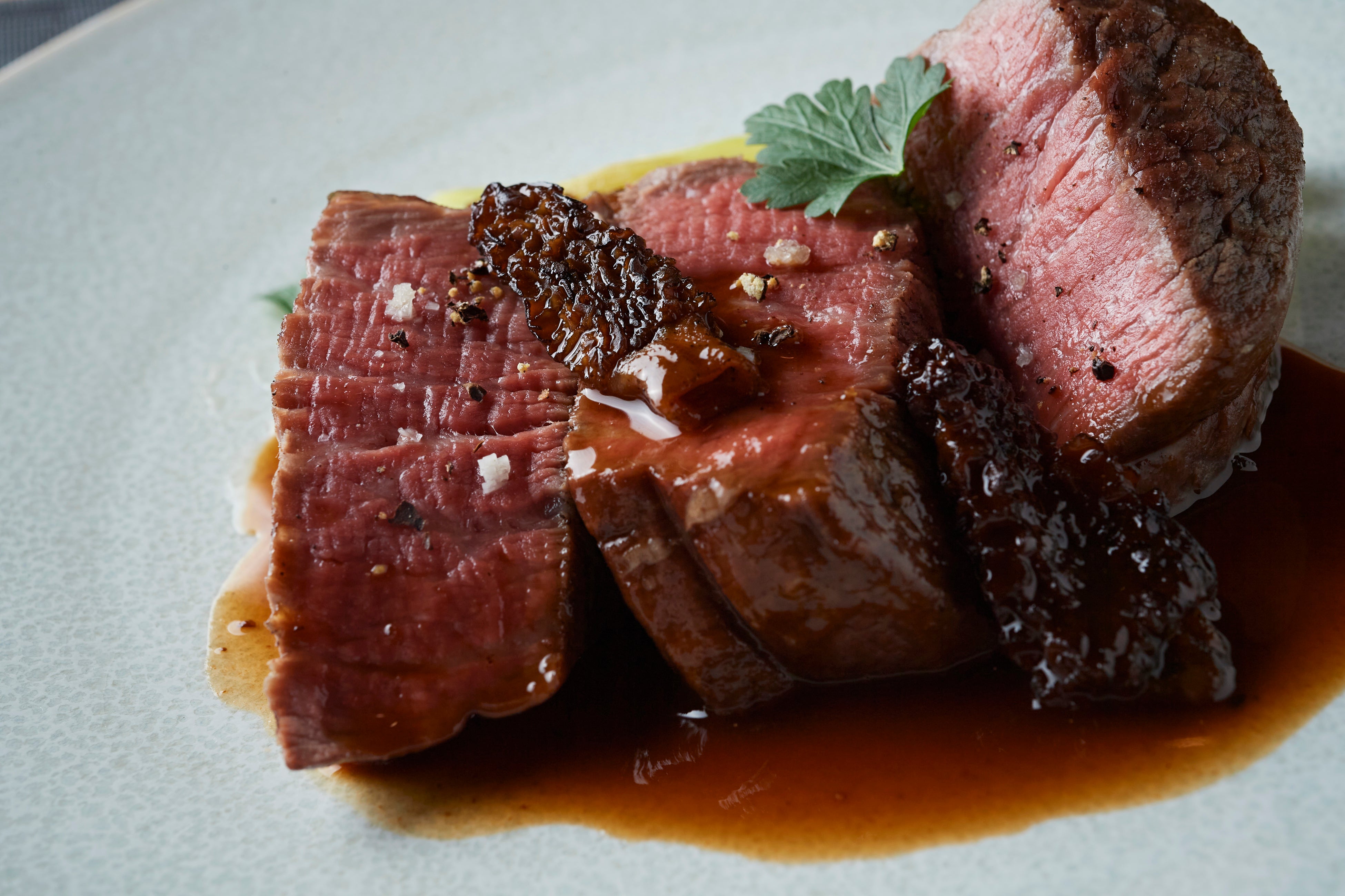 奇跡の炭窯で焼いた、どこで切ってもピンク色の柔らかすぎる「のめるロゼ肉」のコースです。