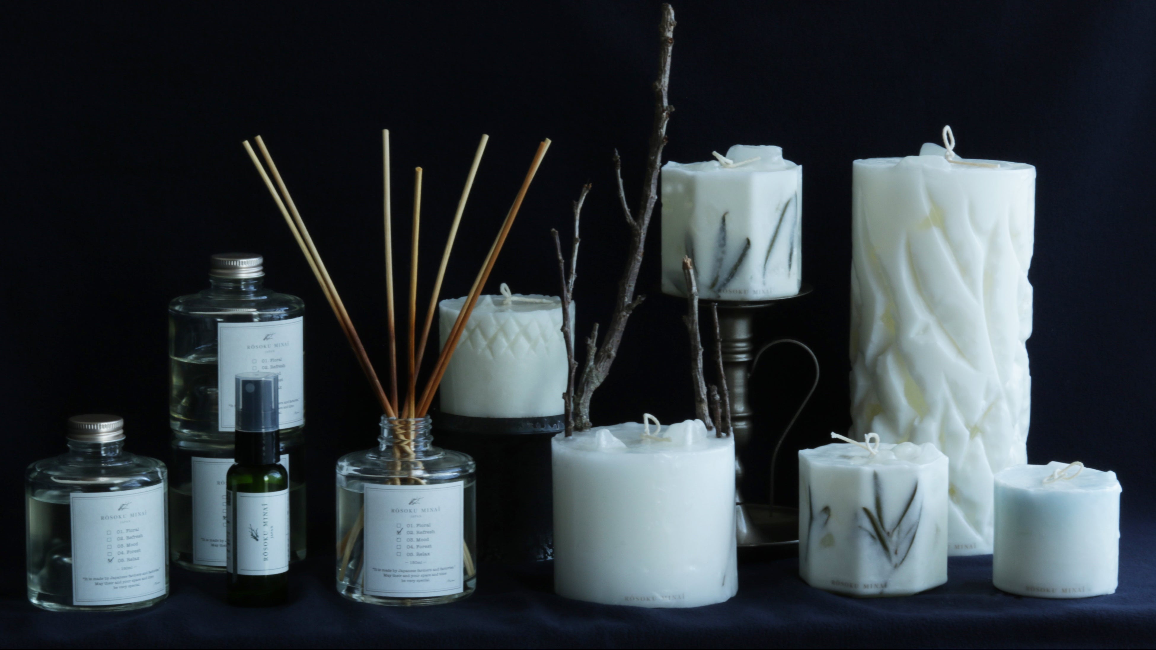 100%天然にこだわった香りの一部には、規格外で廃棄になってしまうフルーツから抽出した精油を使用。プロダクトを通して、人にも環境にも優しい世界を目指している。「見えないストレスを癒したい」「キャンドルだけでなく、香りでも心安らぐ空間と時間を作りたい」「作るものは、天然香料で、しかも環境にも優しいものにしたい」そんな思いから生まれたオリジナルの香りプロダクト。