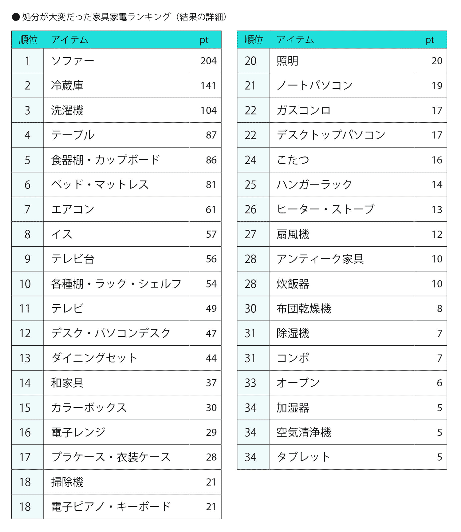 ●処分が大変だった家具家電ランキング(詳細)